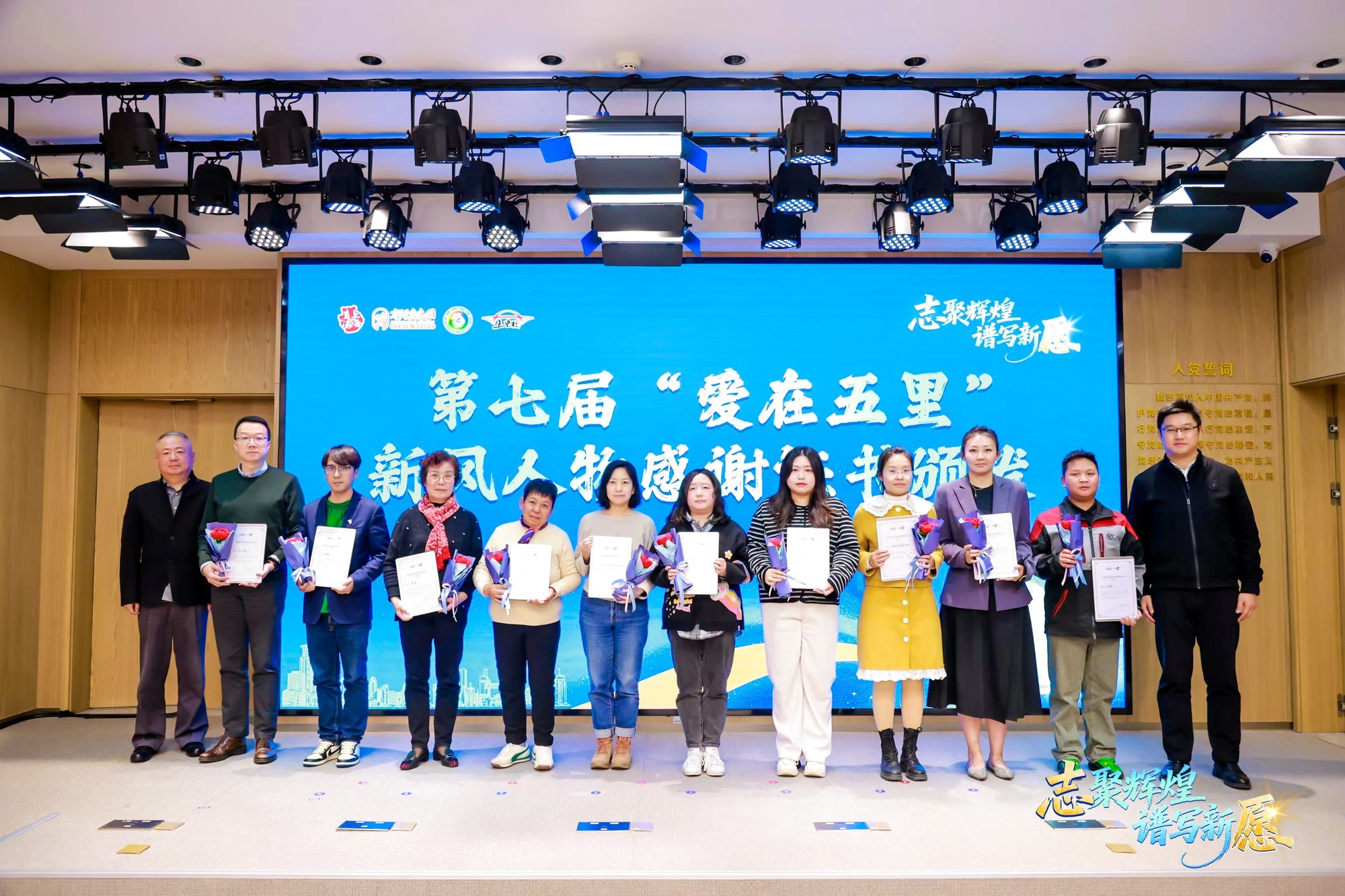 “爱在五里”新风人物代表获颁服务证书,获赠绒线花束。