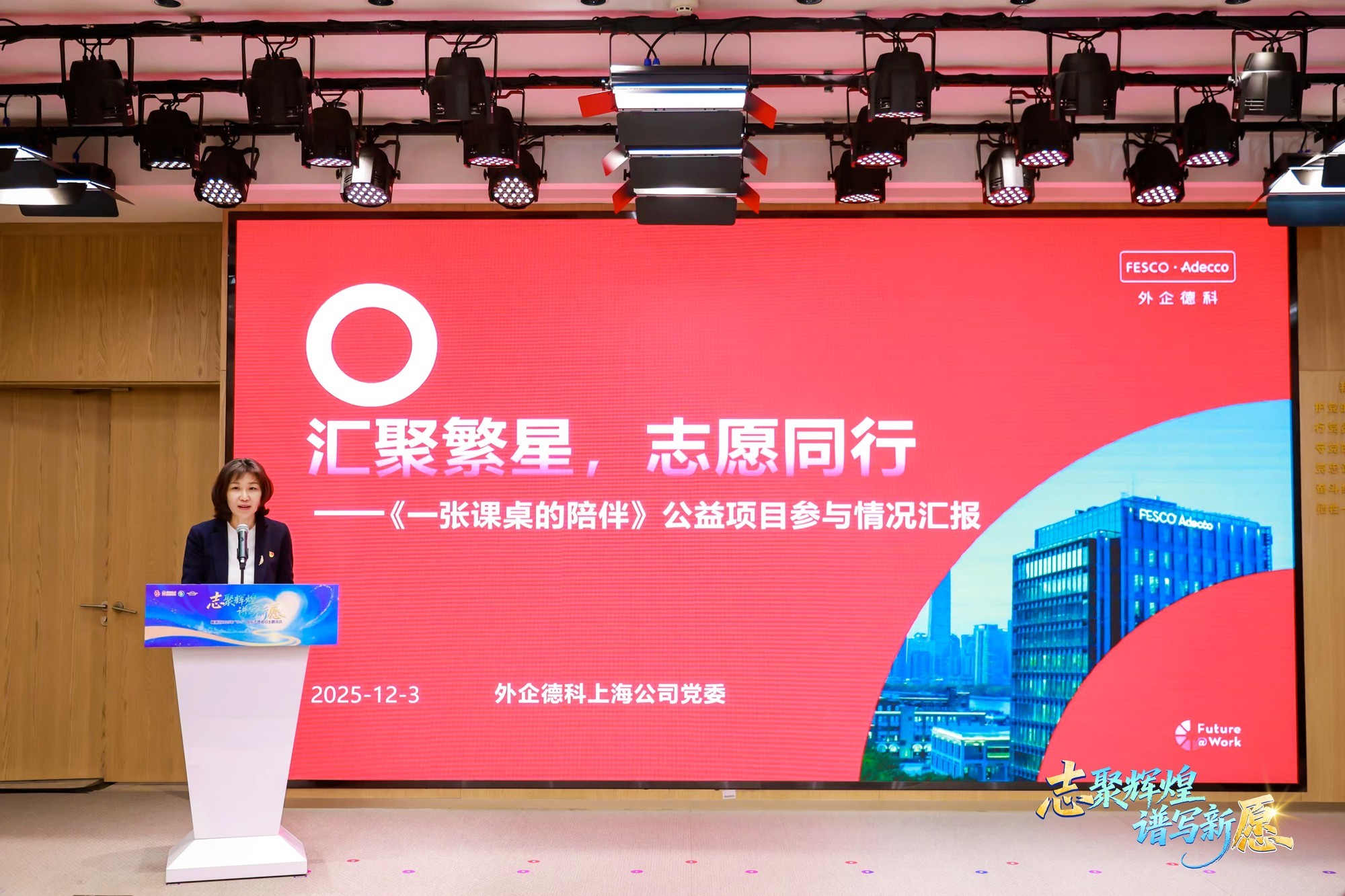 外企德科上海公司党委副书记、副总经理蔡坚分享“一张课桌的陪伴”项目。