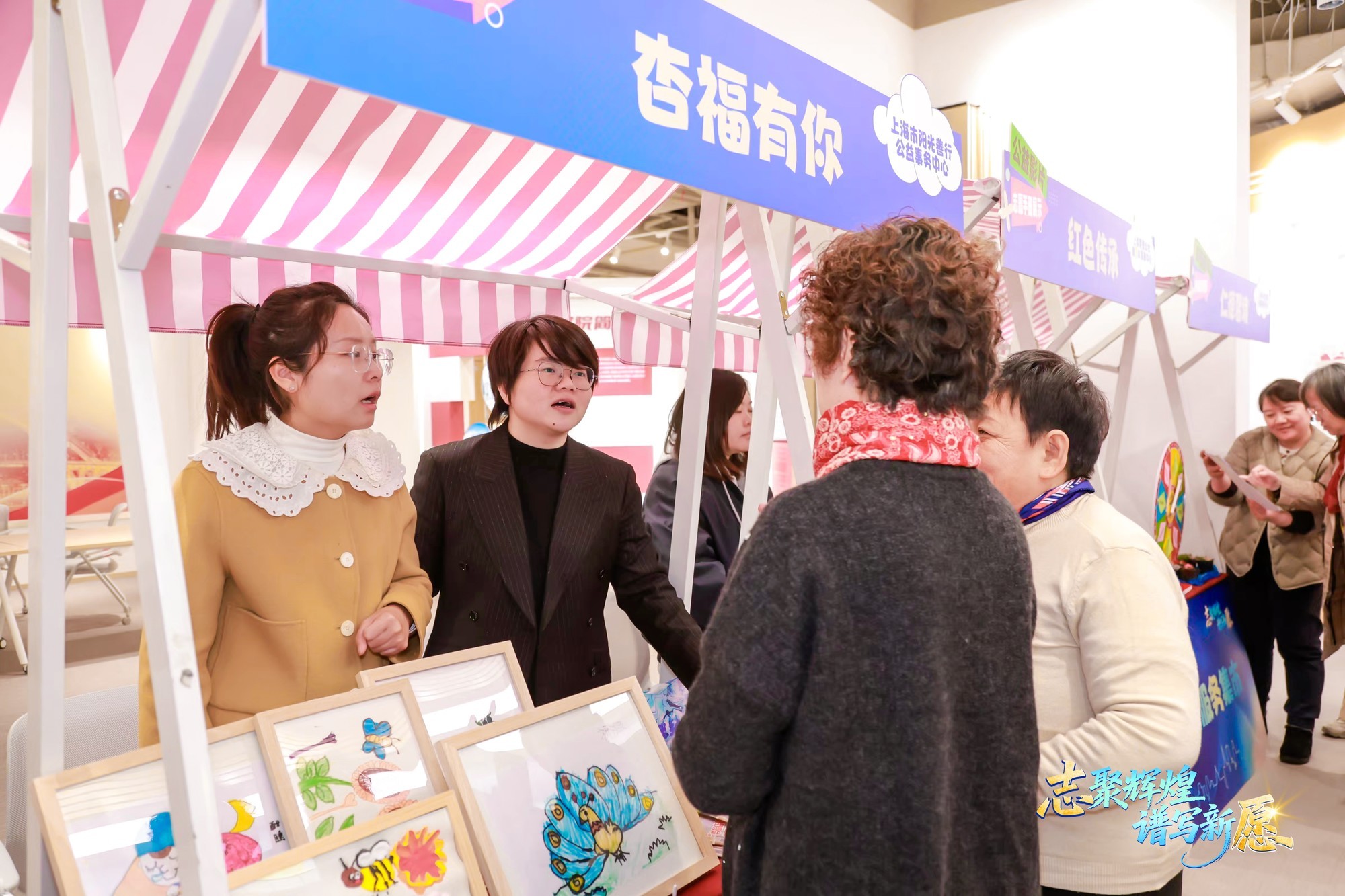 与此同时,外场的市集活动门庭若市。在五里桥街道党群服务中心,黄浦区特殊教育职业学校同学们不仅带来了“志愿咖啡”暖心服务,还以充满想象力与纯真情感的画作,精细布置了“志爱画廊”。