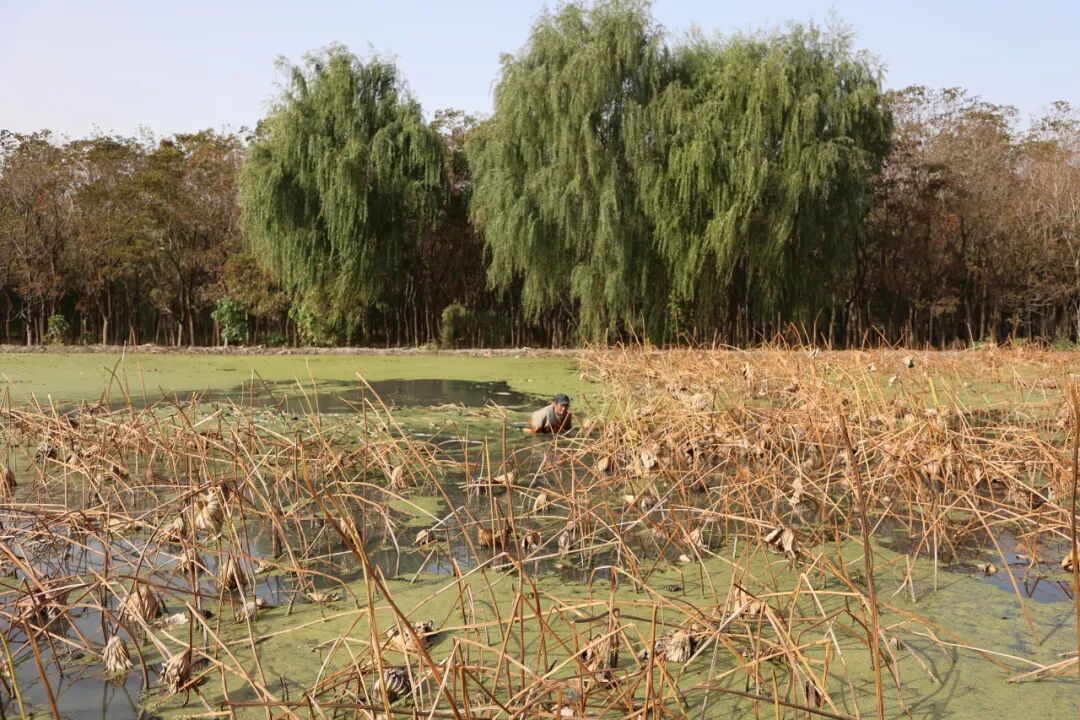 近日,莲藕迎来采收时节,在香花桥街道曹泾村,农户们身着厚重防水衣,踏入沁凉的泥塘,俯身仔细探摸、轻取,一根根鲜嫩饱满的莲藕便破水而出,周身萦着清新的泥土气息,在田埂边层层堆叠成行,铺展出一幅令人喜悦的收获图景。