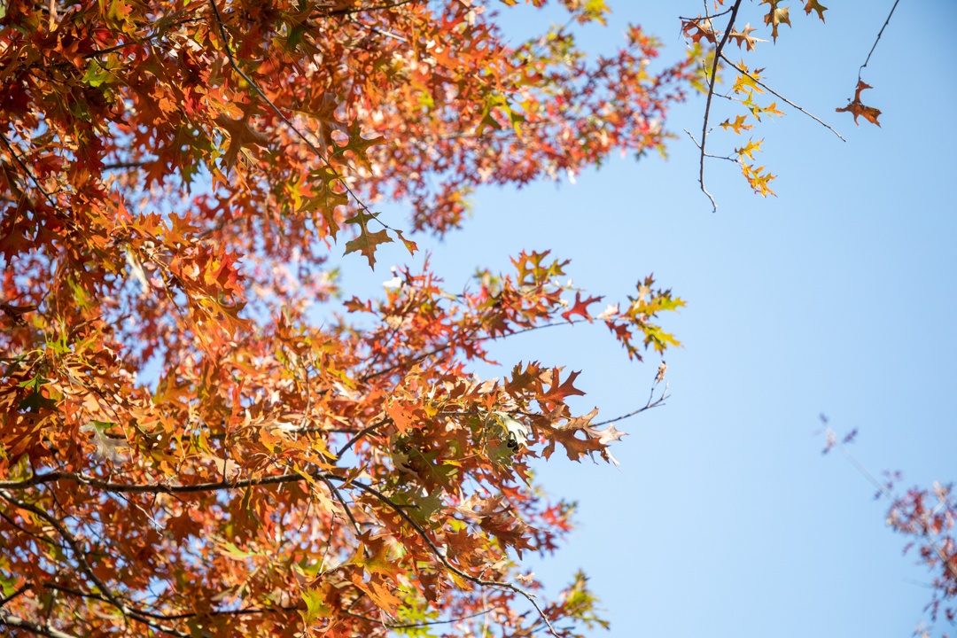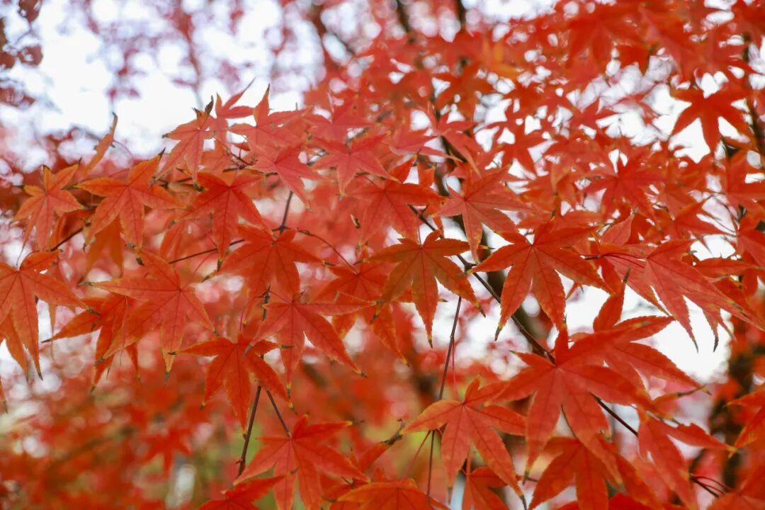 站在长堰路上抬头看,整条路仿佛被罩进了一幅暖洋洋的油画里。娜塔栎的叶子不是单调的红,而是从明亮的鎏金、温暖的橙黄,到浓郁的绯红、沉静的深褐,一层一层地在枝头晕染开来。