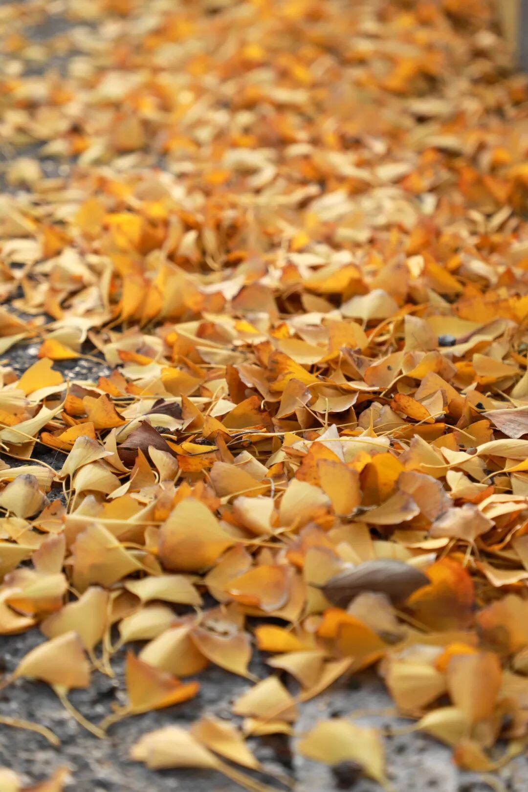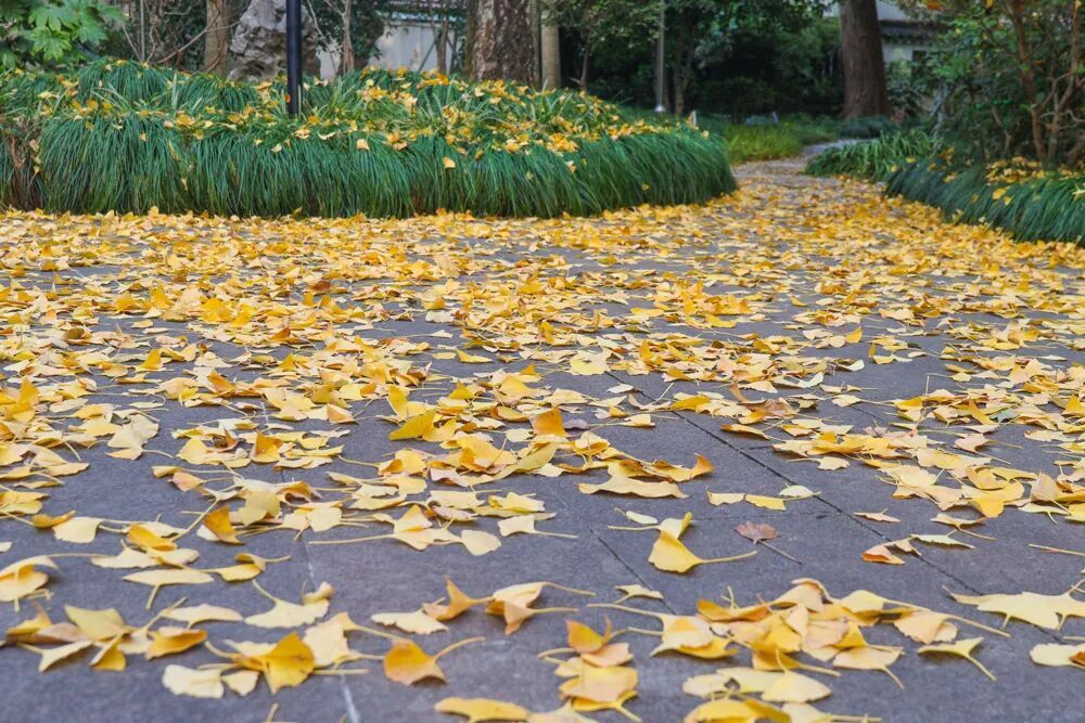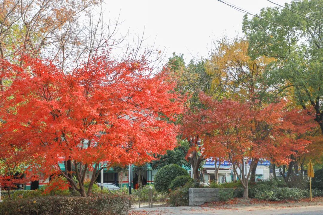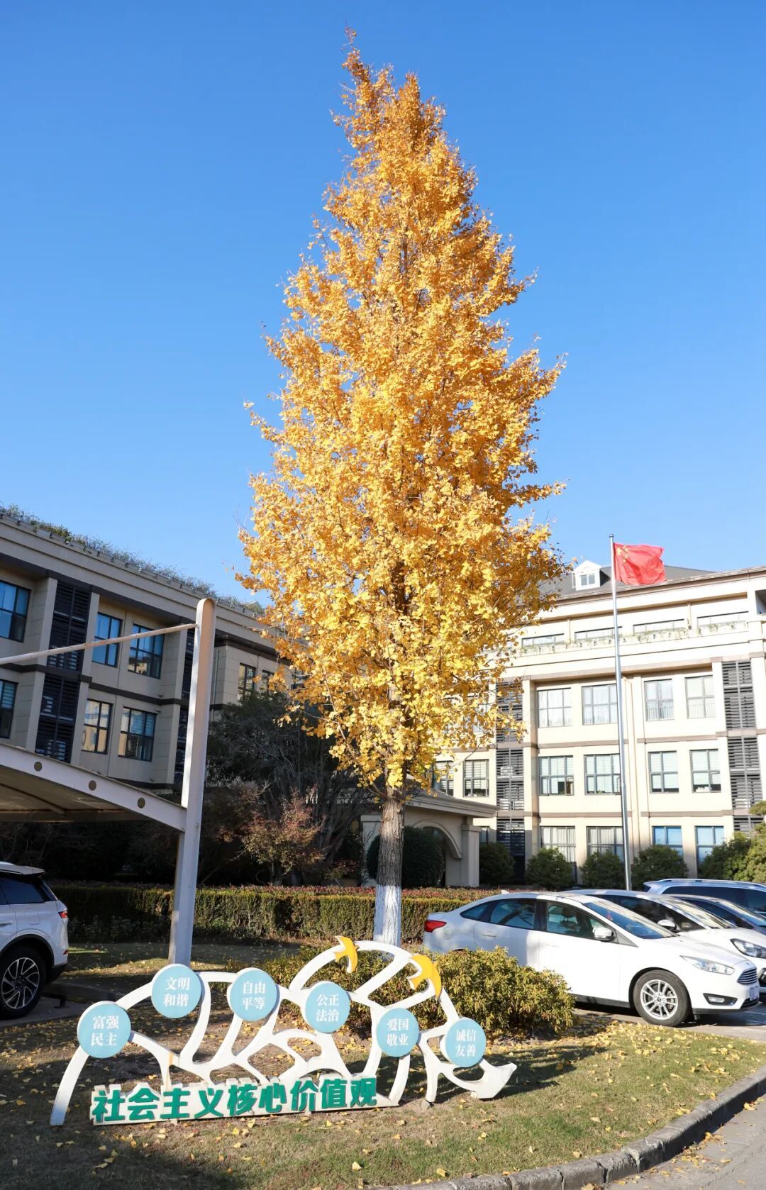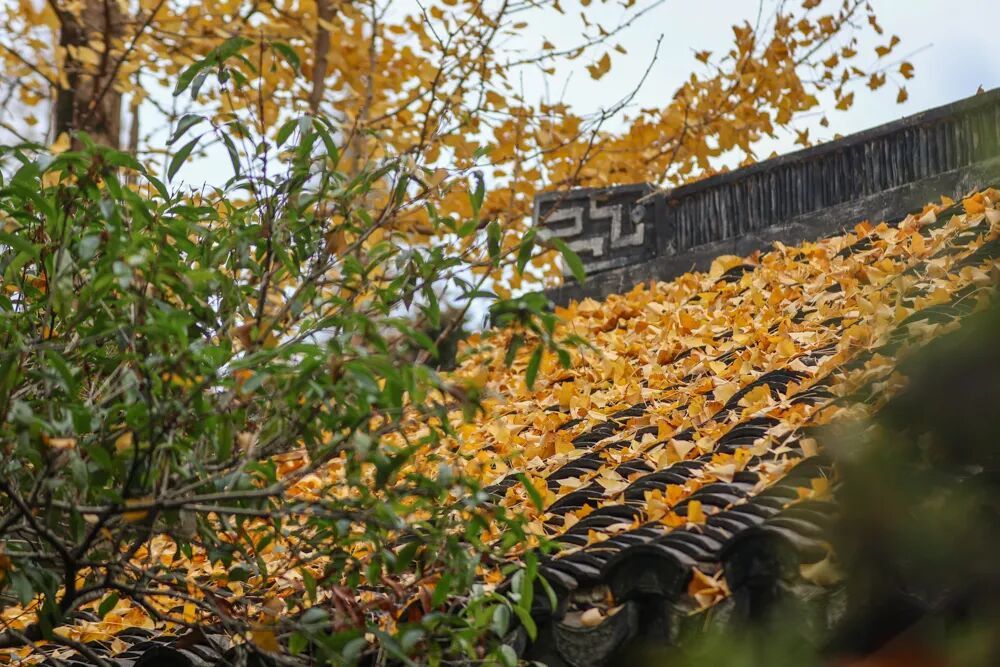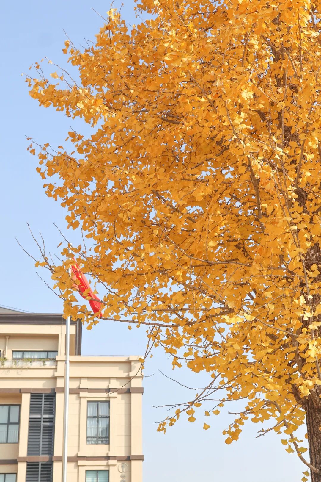 秋意是懂得对称之美的——张堰镇政府院里的银杏与社区学校里的古银杏,约好了似的,一齐将夏日珍藏的绿意兑换成金箔。风过时,那些小小的扇子扑簌簌地落,在地上铺成一片会簌簌作响的光阴。