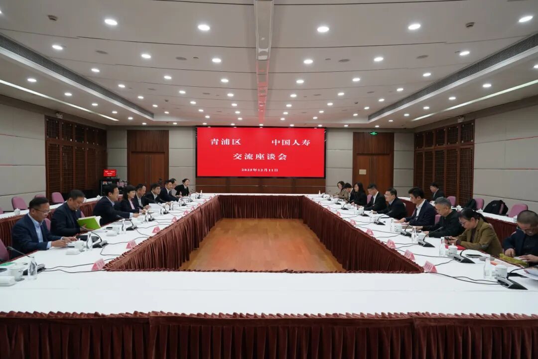 今天(12月11日)下午,青浦区与中国人寿交流座谈会举行。区委书记王平,中国人寿保险(集团)公司上海管理总部常务副主任高志缨出席并讲话。广发银行上海分行党委书记、行长赵殿斌,中国人寿财产保险股份有限公司上海市分公司党委书记、总经理杨楠,中国人寿养老保险股份有限公司上海市分公司党委书记陈协,中国人寿保险股份有限公司上海市分公司党委委员、副总经理林乐平,国寿投资长三角区域办公室负责人张佳楠,副区长张彦出席。