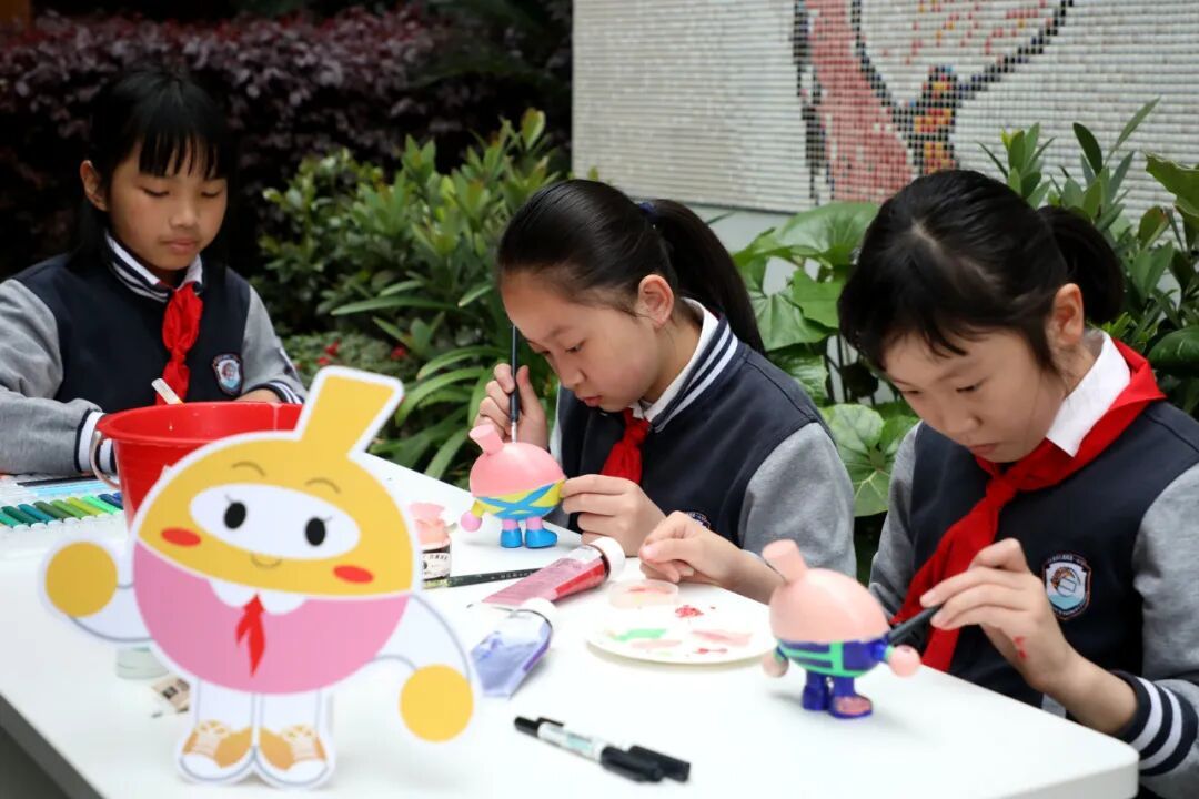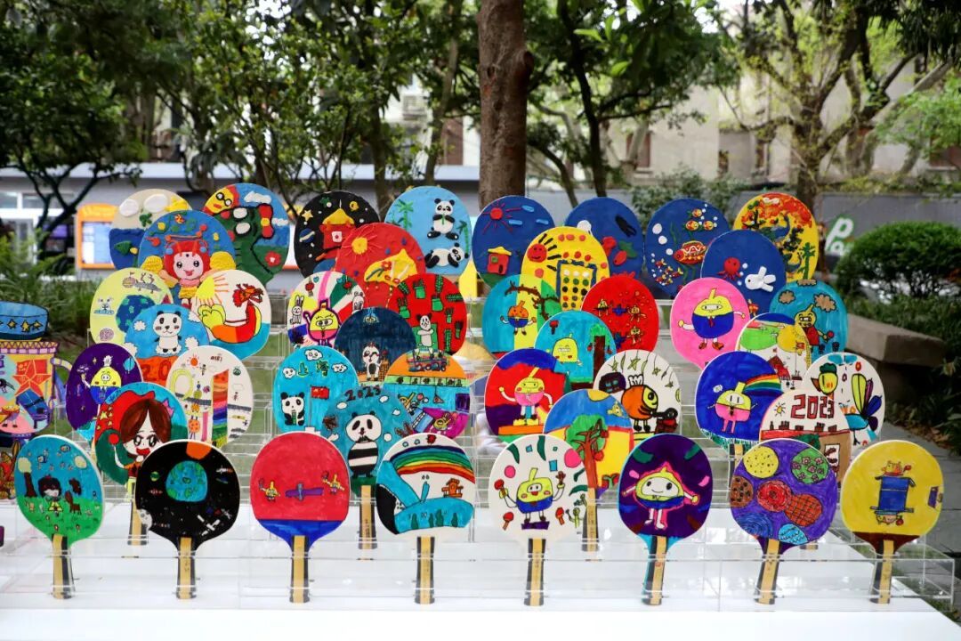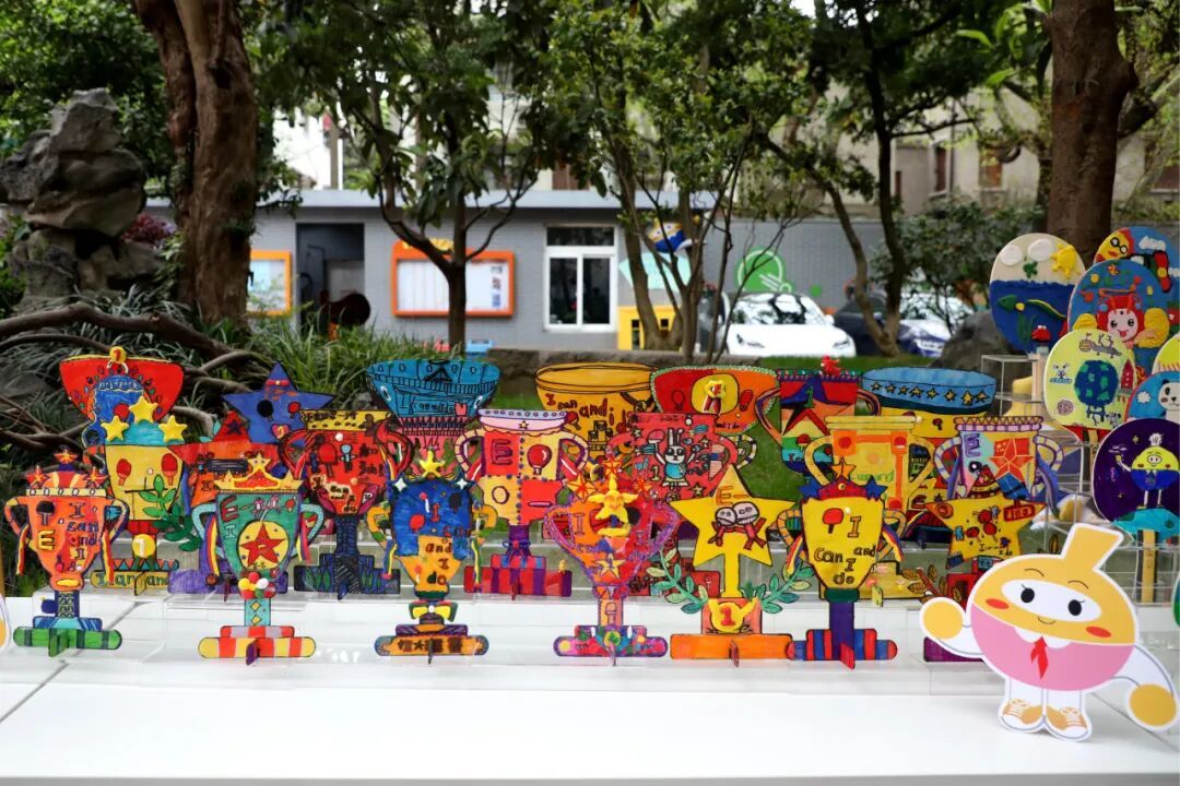 学校校园不大,但到处都藏着孩子们的创意和巧思,“我们计划将图书馆外面的这堵白墙进行改造,老师出了几个方案,但最终怎么设计,还是听学生的;茶艺区域这些远看像浮雕的作品也出自学生之手;孩子们的手绘乒乓球拍、乒乓球小制作也都陈列摆放在了专用教室。”校长周珏说。