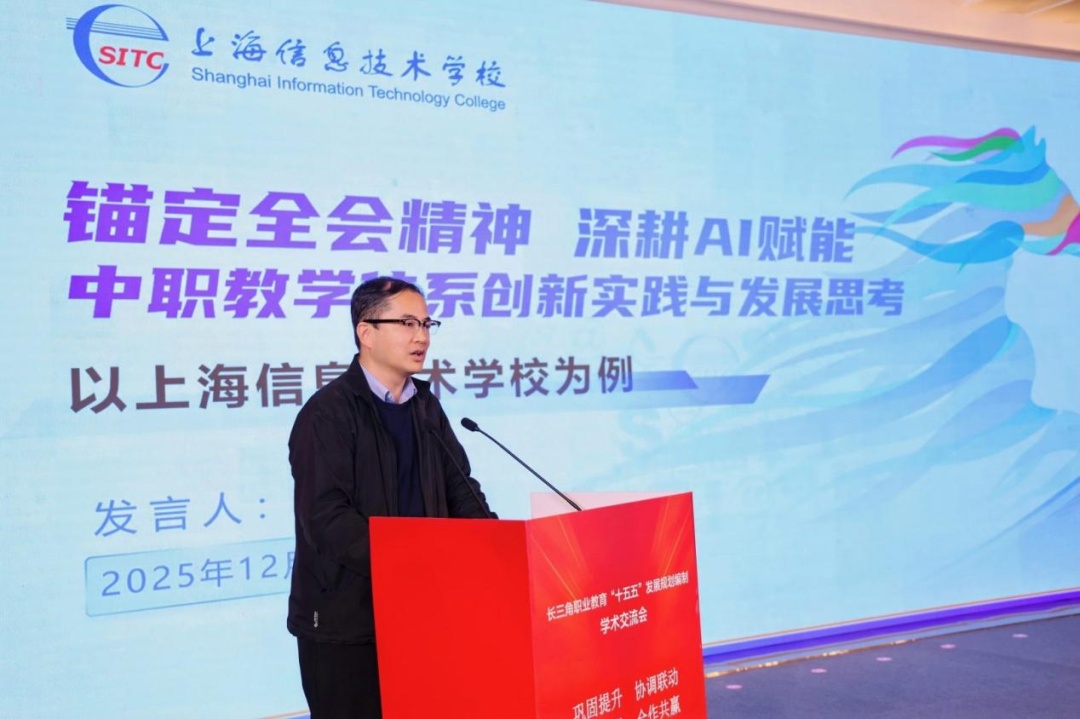 全国中等职业学校校长联席会议主席、上海信息技术学校校长葛睿作“锚定全会精神深耕AI赋能:中职教学体系创新实践与发展思考——以上海信息技术学校为例”主旨报告。他指出,AI赋能要通过校企共研技术底座、校企共建场景应用、校企共育能力体系、校校共享生态资源,形成“基础支撑-核心场景-能力保障-生态协同”的系统性工程,实现从顶层设计到落地实践的全流程推进。