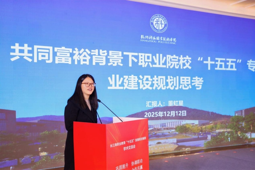 杭州科技职业技术学院职教研究院院长董虹星作“共同富裕背景下职业院校‘十五五’专业建设规划思考”主旨报告。她认为,要通过适应国家战略、区域产业、学生成长来锚定专业设置,通过“一体两翼N重点”形成专业群生态,通过“五金”夯实内涵发展根基,通过“链主企业+市域联合体”深化产教融合,通过打造协同平台深化科教融汇,通过强化“在地化”招生就业策略服务区域共富,并做好专业(群)国际化高质量发展设计等。