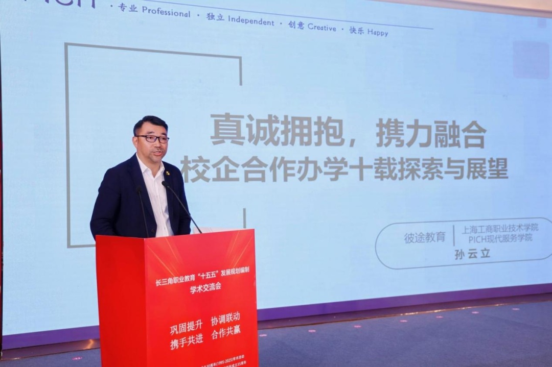 彼途教育总裁、上海工商职业技术学院PICH现代服务学院院长孙云立作“真诚拥抱,携力融合——彼途教育校企合作办学的十载探索与展望”主旨报告。他指出,学院通过十年探索建立了“校企合作、共同创办、偕同管理”合作模式,认为在“产”上要构建信任长期伙伴,在“学”上要充分实践场景教学,在“研”上要链接科研共建生态,在“用”上要用心培育好用人才,在“宣”上要破壁讲好职教故事、打造职教流量热点。