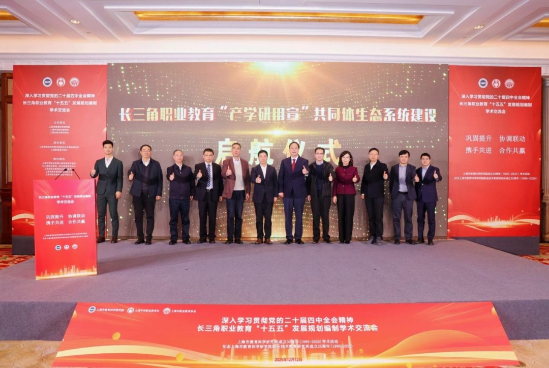 面向“十五五”,长三角职业教育一体化如何谋篇布局? 12月12日,由上海市教育科学研究院、上海中华职业教育社和上海市职业教育协会主办,上海市教育科学研究院职业技术教育研究所、上海教育报刊总社承办的“长三角职业教育‘十五五’发展规划编制学术交流会”在沪举行,来自长三角三省一市近百所职业院校、行业企业、研究机构的代表参会。 本次活动是上海市教科院建院30周年系列学术活动之一,也是纪念教科院职教研究所建所35周年的一次重要学术交流。 活动中,一项关键成果——长三角职业教育“产学研用宣”共同体生态系统建设重磅启动,作为承办方的上海教育报刊总社亦是该共同体的重要成员与推动者之一,此举标志着区域协同发展进入新阶段。
