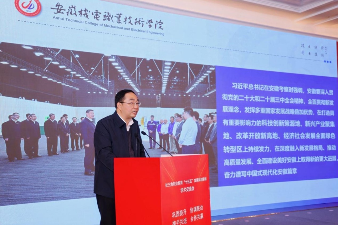 安徽机电职业技术学院党委书记徐春林作“服务安徽‘三地一区’建设,创建高水平智能制造高职学校”主旨报告。他指出,学校将锚定“三地一区”、制造强省建设,提升职业教育适配能力、打造智能制造高职品牌;并将聚焦新质发展要求,推进高水平高职学校建设,实施新时代立德树人、产教融合深化、高技能人才集群培养、专业群建设改造、师资队伍培优、课堂质量提升、社会服务升级、数智技术赋能等重点工程,推动服务贡献高效能。