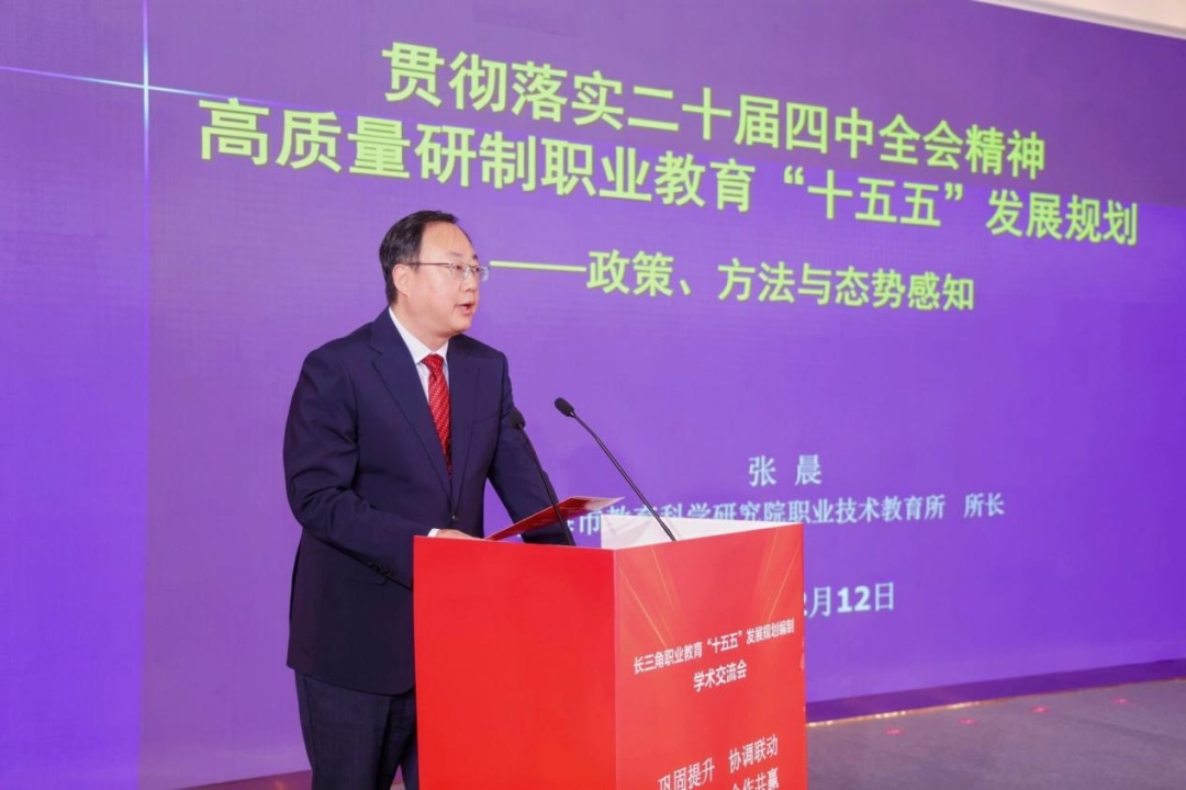 上海市教育科学研究院职业技术教育研究所所长张晨作“贯彻落实二十届四中全会精神,高质量研制职业教育‘十五五’规划”主旨报告。他系统分析了党中央关于职业教育的系列部署要求,强调职业教育“十五五”规划应运用系统观念、底线思维、态势感知等方法,把握人口变动、资源配置、体系建设、职普融通、产教融合、国际交流、数字赋能等战略重点,主动识变应变;并认为三省一市应坚持“巩固提升、协调联动、携手并进、合作共赢”,加快推进长三角职业教育一体化进程。