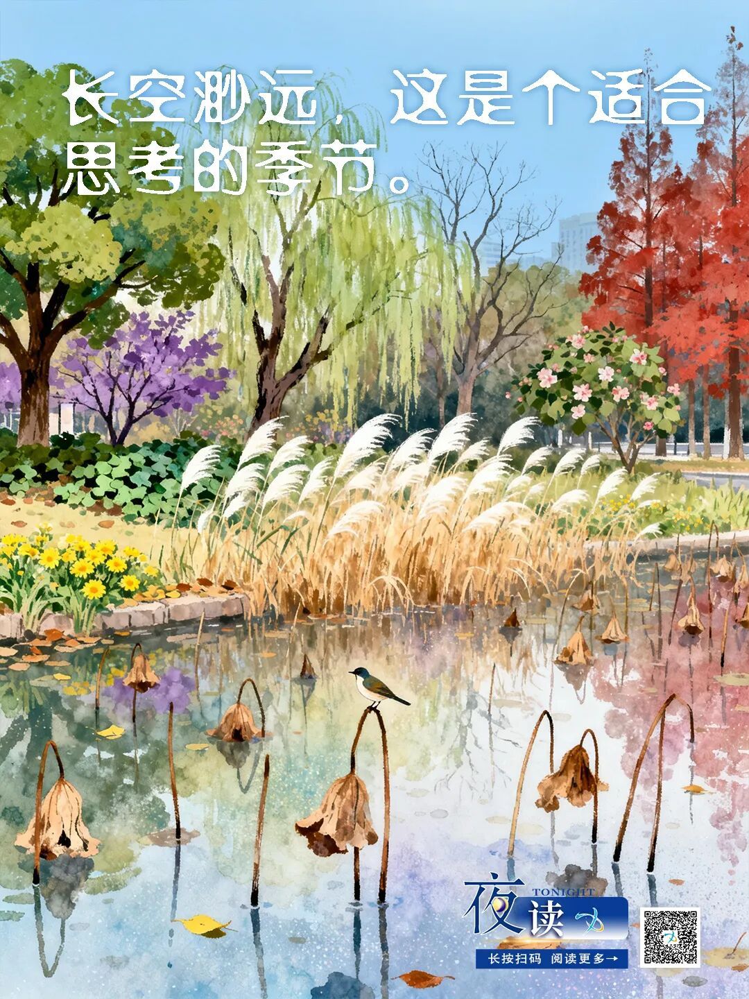 这是个适合思考的季节。长空渺远,有动物和植物被“屏蔽”休眠,也有人需要停顿、独处。四季好像生活中的五味,缺少哪一种都会令人觉得寡味。秋去冬来,树叶完成了守候的使命,选择飘零离开枝头,酝酿来年的重生,寒冬即临,春将接踵而来。