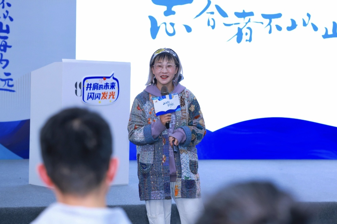 每位参与者都领取了一张专属“船票”,这是通往未来的凭证。而在最引人注目的“沙漏拼图”环节,大家共同将彩沙注入,随着沙砾的堆积,一副写着“志合者,不以山海为远”的作品逐渐显现。