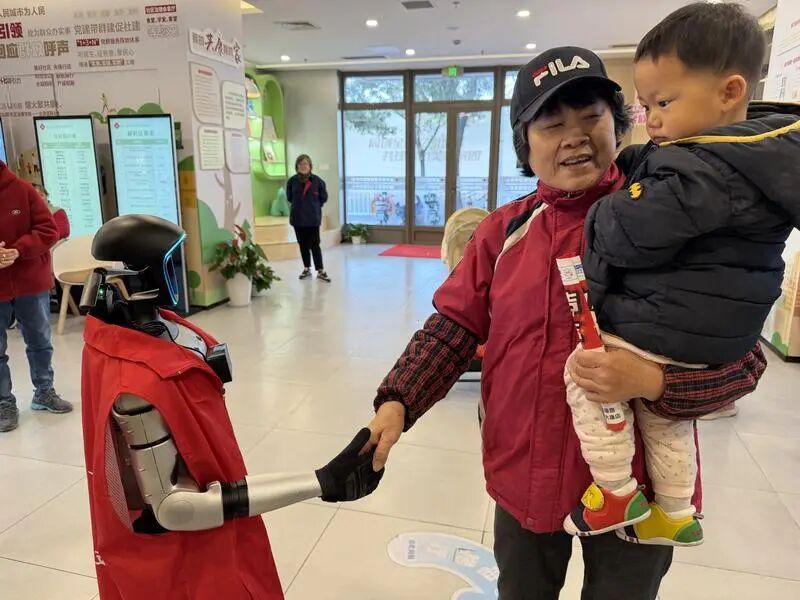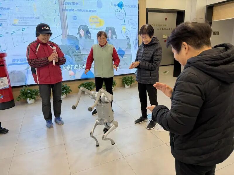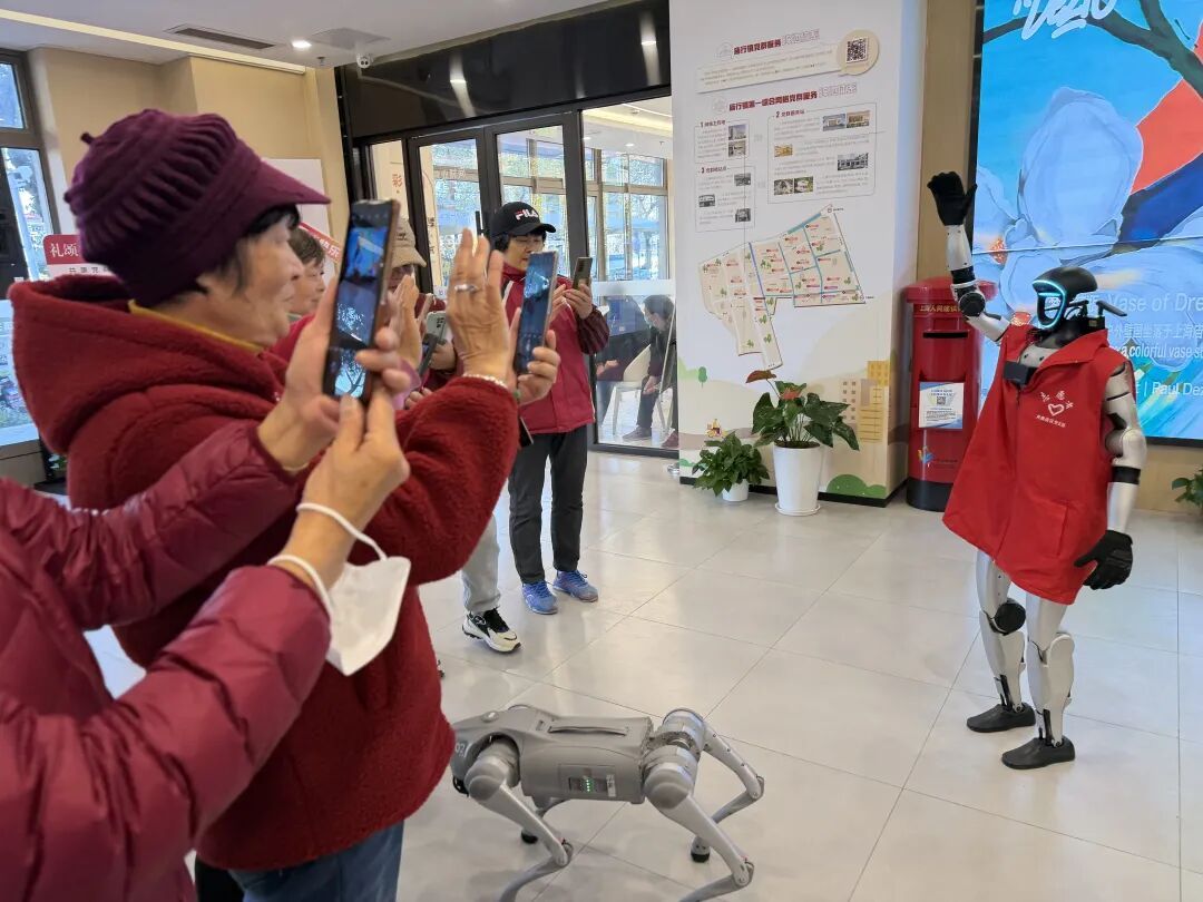 一走进中心大厅,身高约1.2米、身着红色志愿马甲的“庙小服”主动挥手迎宾,承担起引导讲解的职责。一旁的机器狗则活泼地展示着舞蹈、立身、倒立等动作,还能伸出前爪与靠近的居民“握手”互动,吸引众多居民尤其是老人和孩子驻足、合影,更带动中心日均人流量突破3000人次。 市民卢阿姨说:“刚开始小朋友有点怕,现在觉得特别稀奇。”曹阿姨也表示:“以前只在春晚里看到,现在机器人、机器狗来到我们身边,可以一起拍照、握手,非常好玩。”