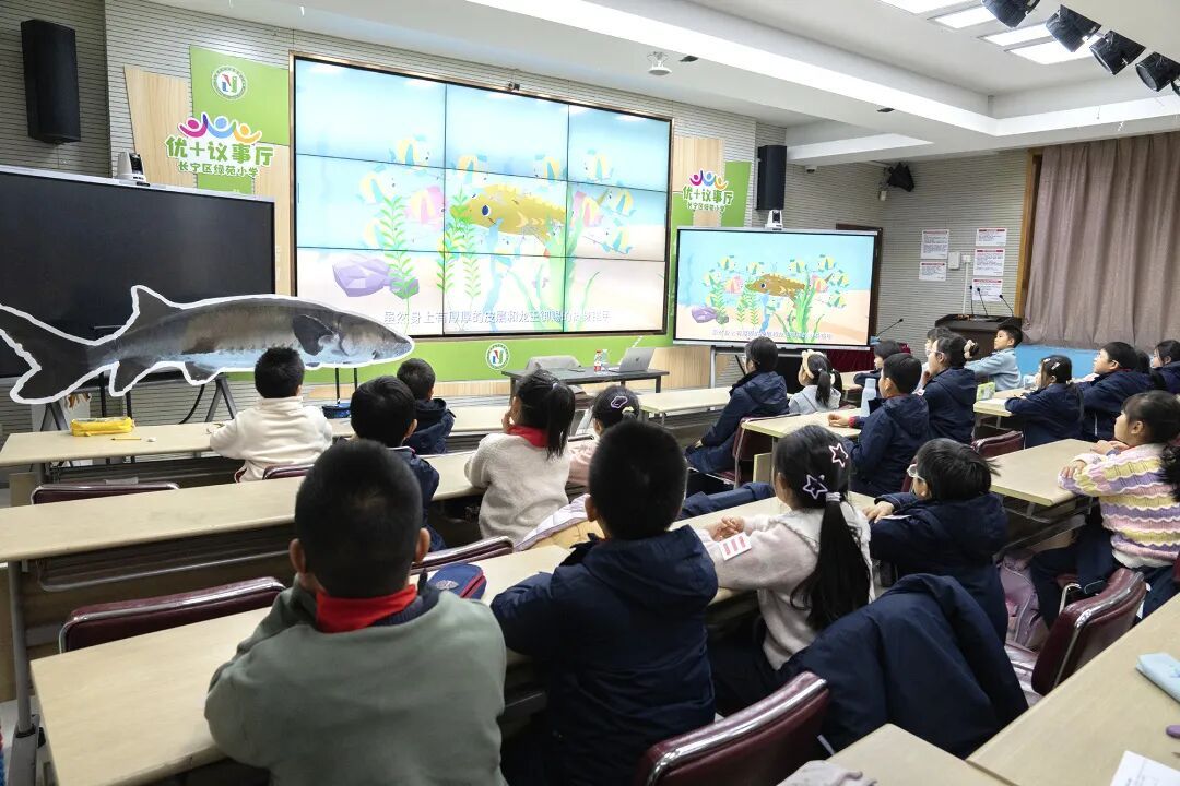 校园精准科普,深耕未来希望。深入长宁区、浦东新区、崇明区的6所中小学,针对不同学龄段学生特点,定制科普课程与互动环节,累计面向2397名中小学生开展宣讲。课程内容不仅涵盖中华鲟的生命周期、濒危现状及保护措施,更延伸至长江生态系统整体性保护的意义,引导同学们思考个人行为与生态环境的关联,培养他们的科学探究精神和环境保护责任感。