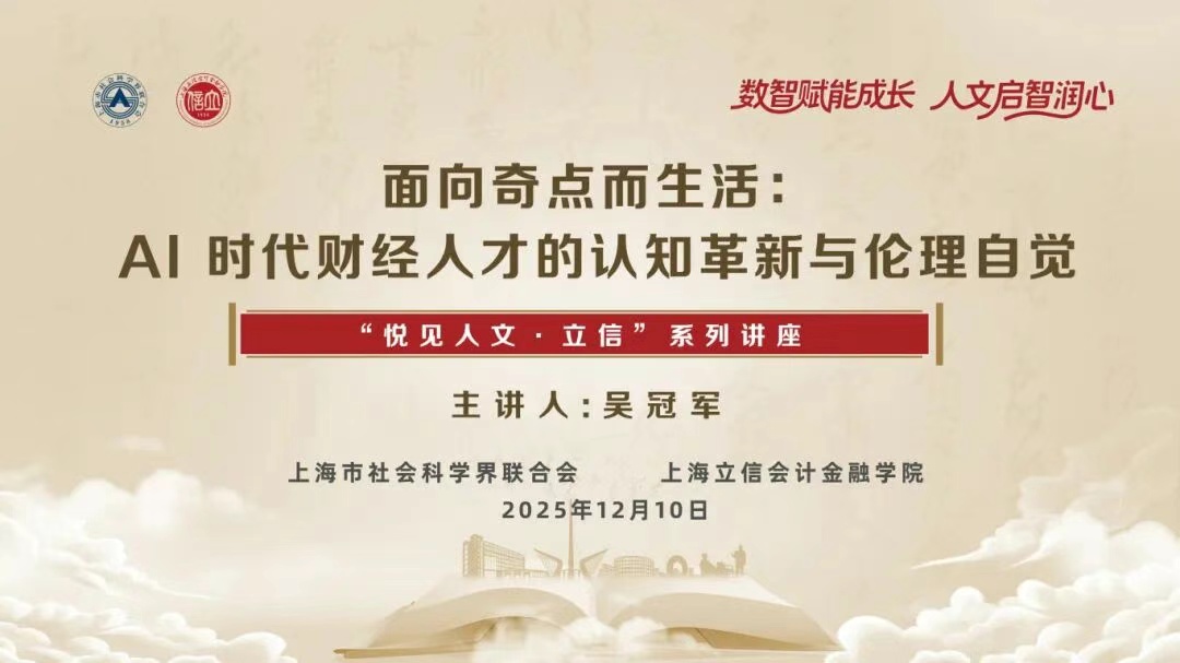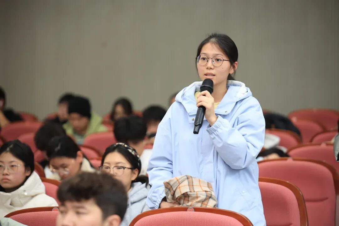 讲座互动环节,吴教授进一步阐释财经人才核心竞争力在于“深度连接”——跨学科整合知识、与领域高手共建学习网络、善用AI处理基础工作以聚焦复杂决策与人文价值判断。他呼吁青年学子在深耕专业学习的同时,注重涵养人文素养,将培养面向未来的批判性思维、伦理自觉与终身学习能力,作为应对“可能被AI替代”挑战的根本路径;并倡导借鉴人工智能中的“深度学习”理念,主动参与协作,在交流与共创中构建群体化的知识演进生态。