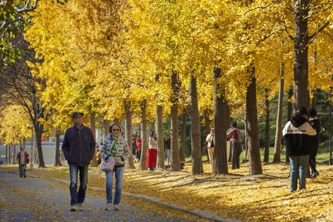 踏入黄金城道,仿佛走进了童话中最明丽的章节。阳光透过枝叶,将银杏照得通透如琥珀,整条街流淌着温暖的光泽。风来时,万千叶片翩然飞舞,持续洒落一场梦幻的“黄金雨”。行人纷纷慢下脚步:有人仰头静观叶落,有人俯身拾取秋意,感受季节馈赠的宁静与美好。
