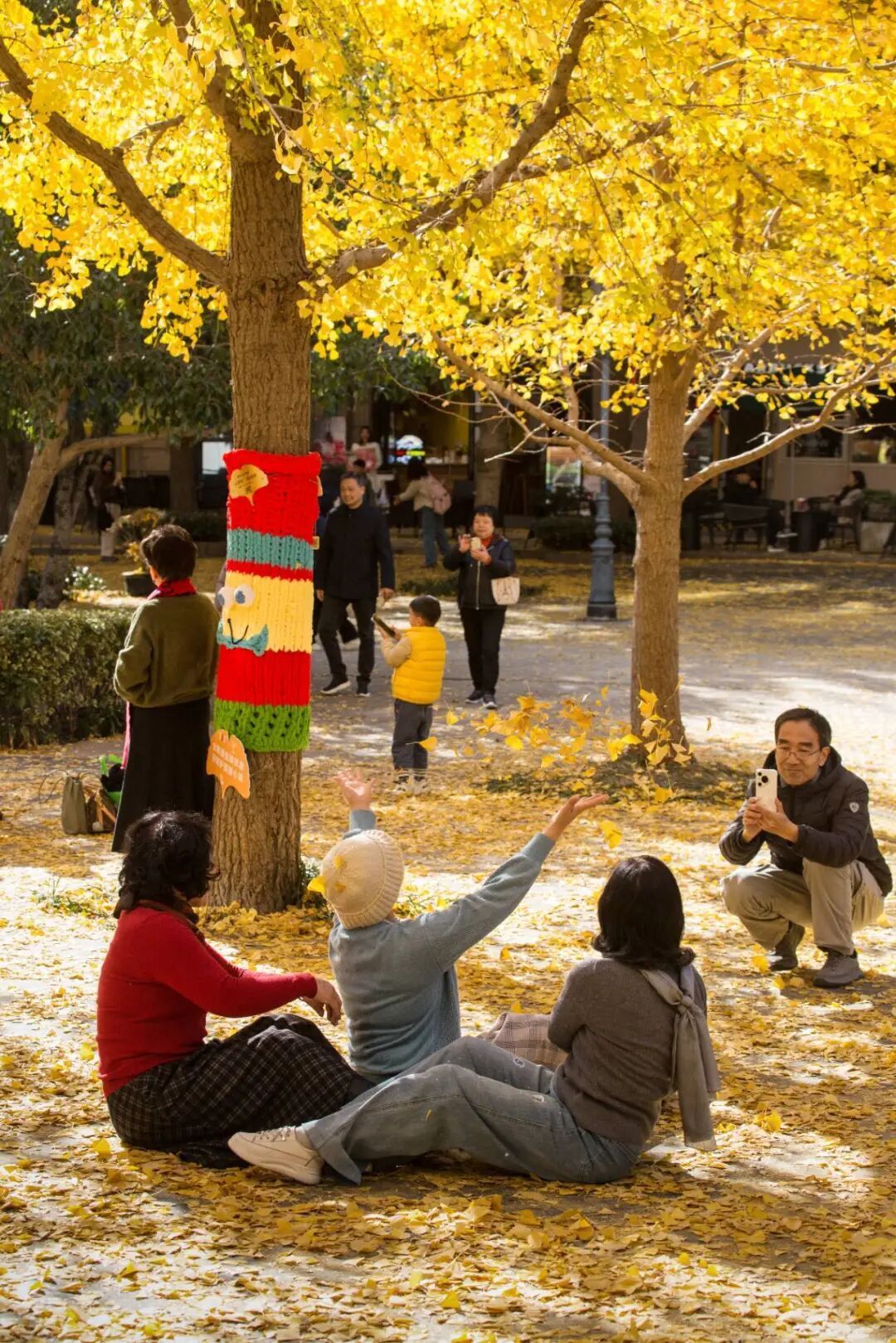 延虹绿地里也分外热闹,落叶满地后,这片银杏林树上树下一片金黄,吸引了不少市民前来打卡拍照。听着市民们的笑声就知道这个点位有多出片了。