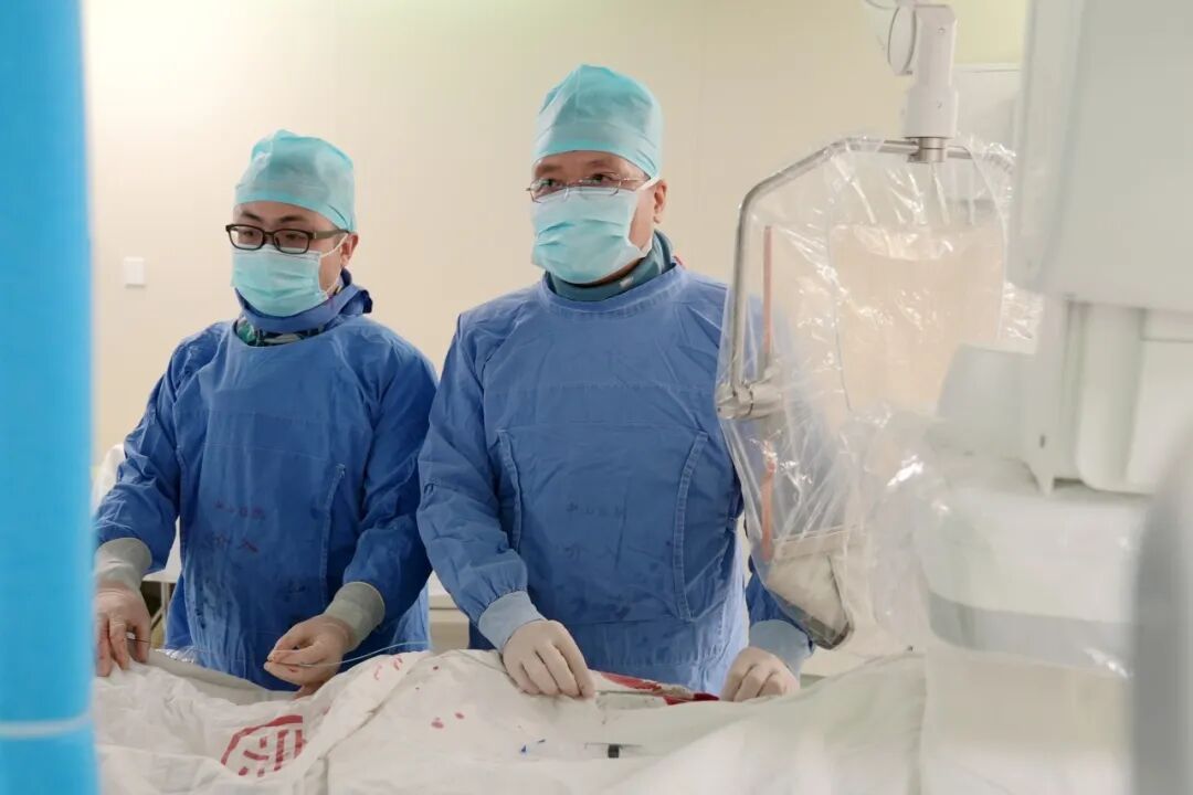 手术室内又是一场无声的考验。无法通过语言感知患者感受,团队只能靠专业默契与细致观察护航。然而,术中造影画面带来了新的挑战:患者的肝动脉解剖结构异常扭曲,像一团缠在一起的线,想把导管精确送到出血点,变得非常困难。在介入治疗科主任颜志平的密切关注下,瞿旭东主任医师带领手术团队迎难而上。他冷静地调整导管角度,反复通过多角度造影和锥形束CT精准定位。“找到了!”在团队的专注协作下,终于锁定出血的责任血管,将止血用的明胶海绵颗粒精准注入靶点。当造影显示出血征象完全消失时,手术室里响起轻轻的呼气声。
