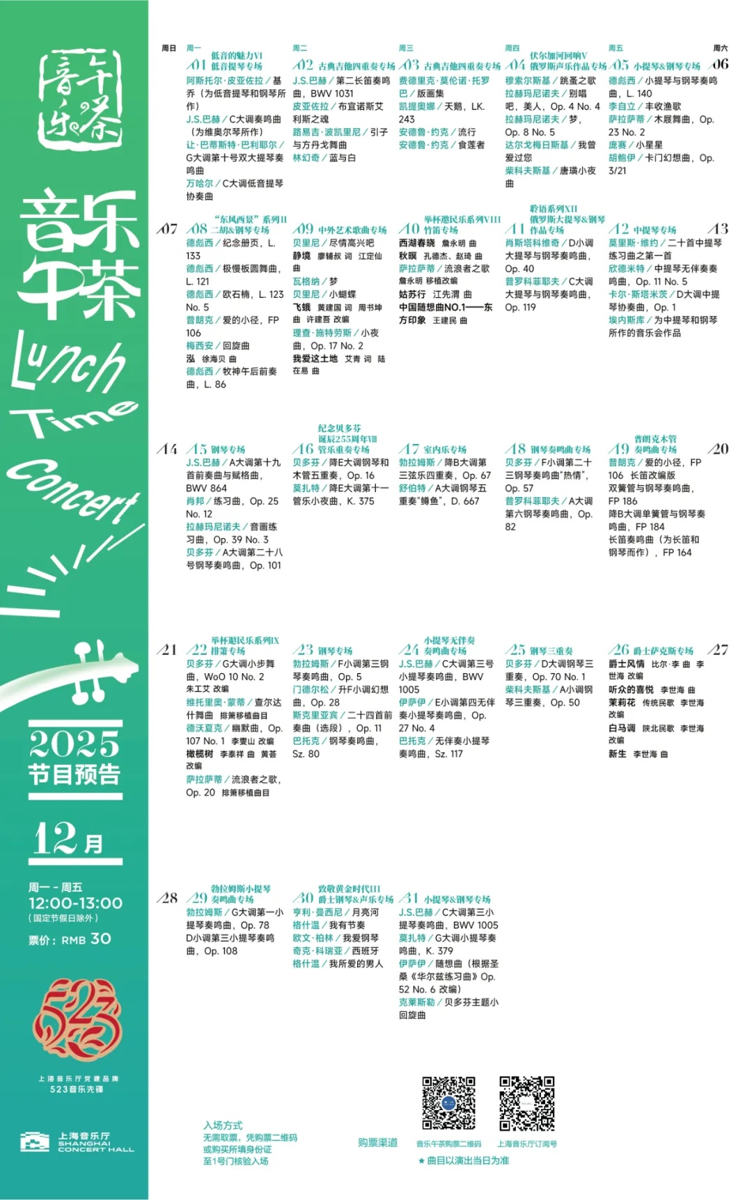 2025年1月7日“音乐午茶”迎来了自己的十三周岁生日,也迈向了品牌的第二个十年征程,截止2025年11月4日底,该项目已成功举办了2600余场音乐会,9500余位艺术家在这里与大家见面,上演了16000多首作品,观演人数达38.8万人次。