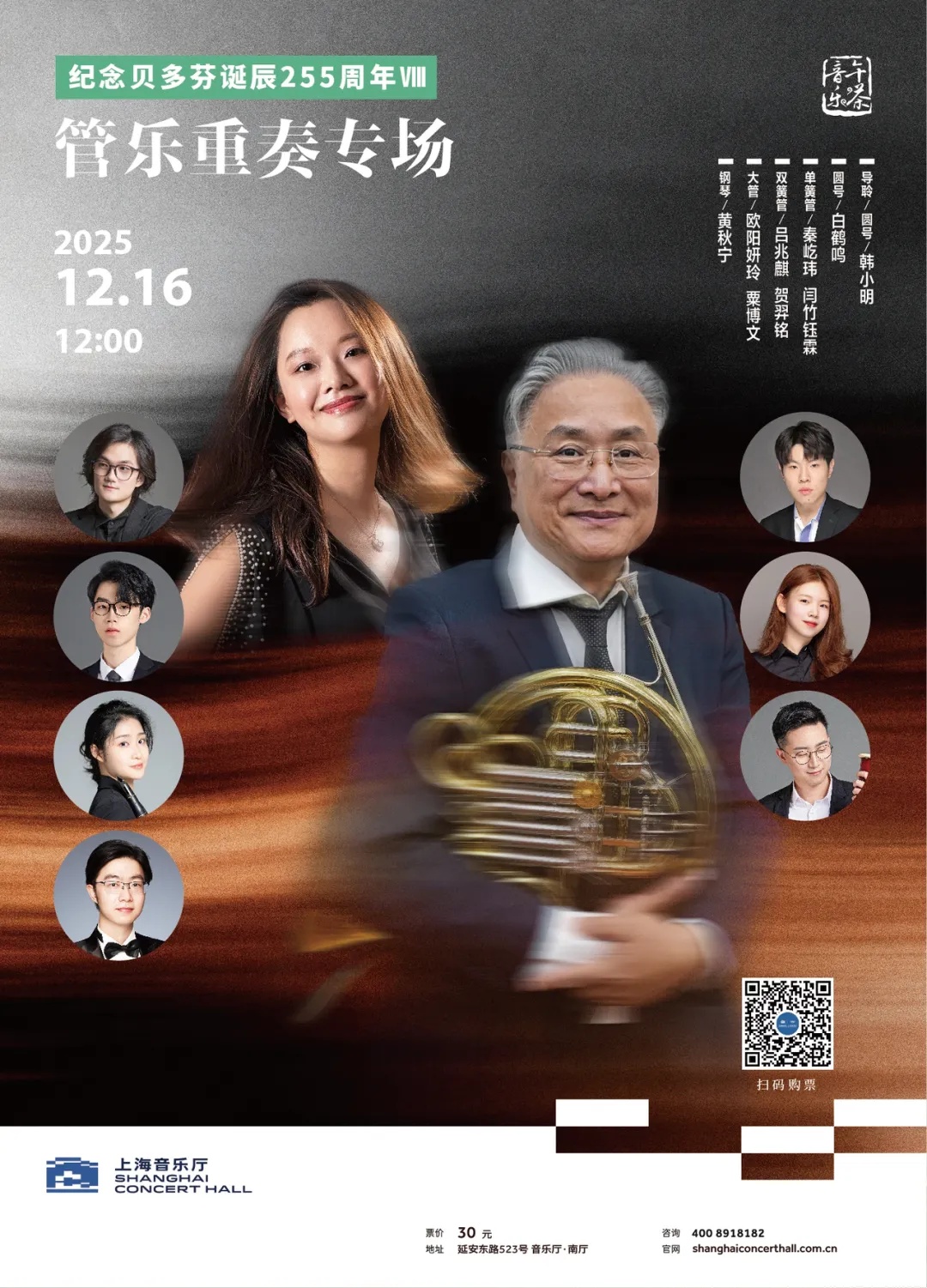 12月16日即将线上直播“音乐午茶”纪念贝多芬诞辰255周年Ⅷ——管乐重奏专场,聚焦莫扎特与贝多芬经典管乐作品。值此贝多芬生日之际,向不朽的乐圣致敬!本场音乐会将再现维也纳风格的清澈旋律与细腻情感,木管乐器的璀璨音色与丝绒质感交融,演绎贝多芬《降E大调钢琴和木管五重奏》和莫扎特《降E大调第十一管乐小夜曲》两首作品,尽显古典韵味。