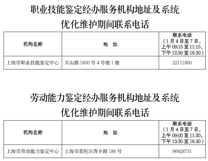 根据系统优化需要,本市人社信息系统将于2026年1月1日(周四)20时至2026年1月7日(周三)24时进行优化维护升级。届时,本市人社柜面经办系统、上海市人力资源和社会保障局门户网站、上海市人力资源和社会保障局自助经办系统,“一网通办”PC端、“随申办”移动端、社区事务受理系统等平台上的人社业务,以及全国人力资源和社会保障政务服务平台、国家社会保险公共服务平台等上海端业务将暂停服务。