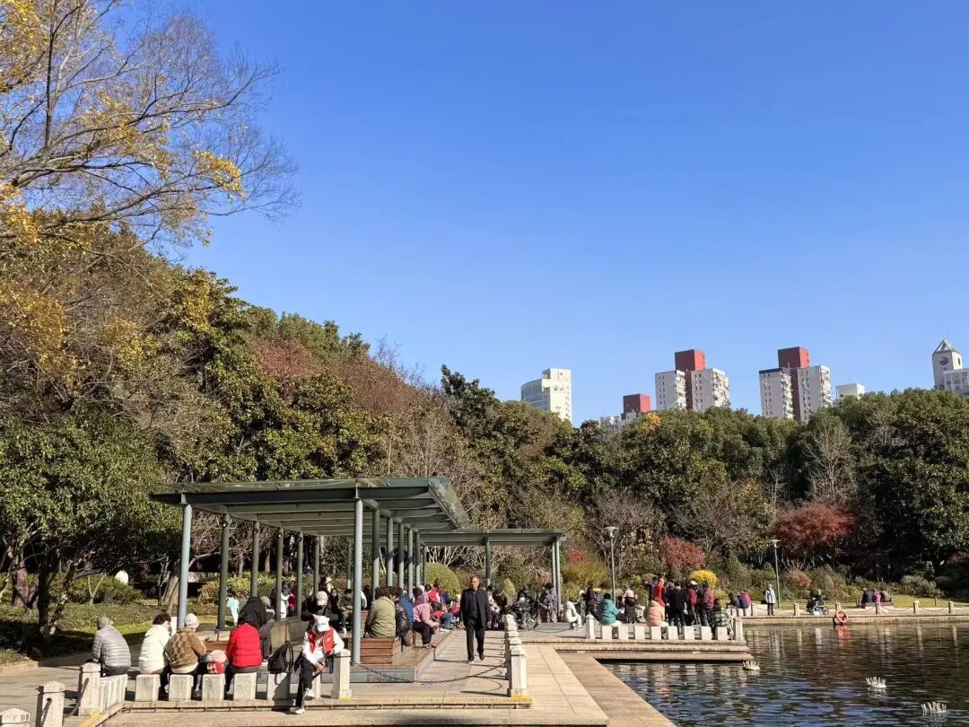 申城今日天空静蓝无云,晨间寒气逼人,户外体感清冷。随着阳光出现,气温一步一步往上爬。上午十点,徐家汇公园内,不少市民在长椅上悠闲晒太阳。湖面波光粼粼,一群麻雀时而在树梢间飞掠,时而在草地上啄食,为公园增添了几分活泼生机。