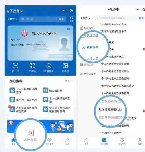 登录“电子社保卡”,首页-人社办事-社会保障-社保待遇资格认证。
