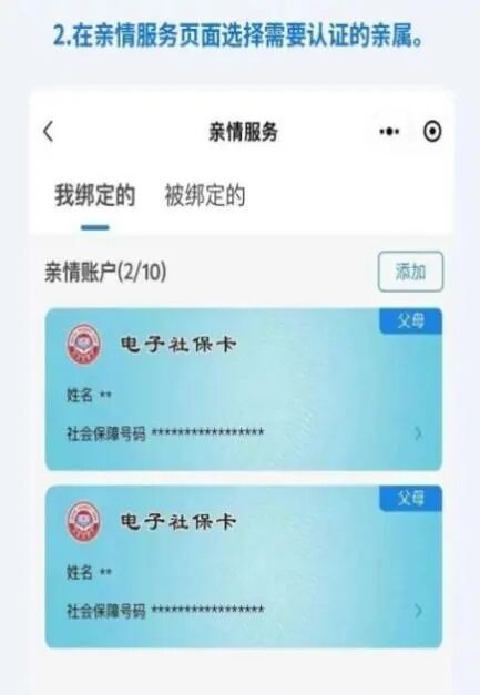 子女也可以在亲情服务页面,按照提示为父母协助认证。