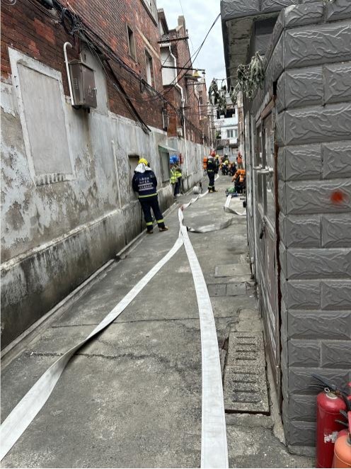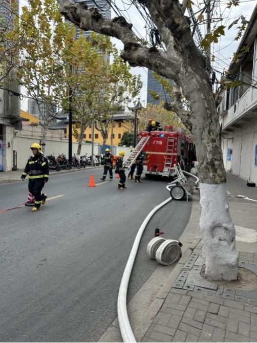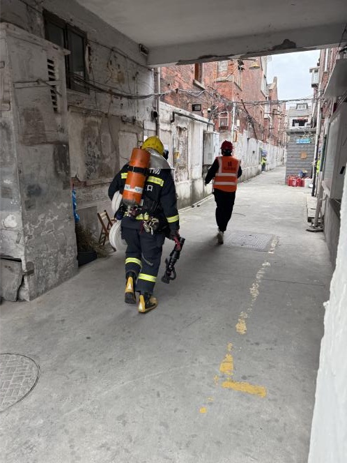 近日,虹建公司与虹口区消防救援支队在109街坊旧改基地开展消防救援联合演练,以提升老旧房屋区域火灾应急处置能力,防范消防安全风险。双方共40余人参与,紧密协调制定方案,聚焦火灾扑救难点。