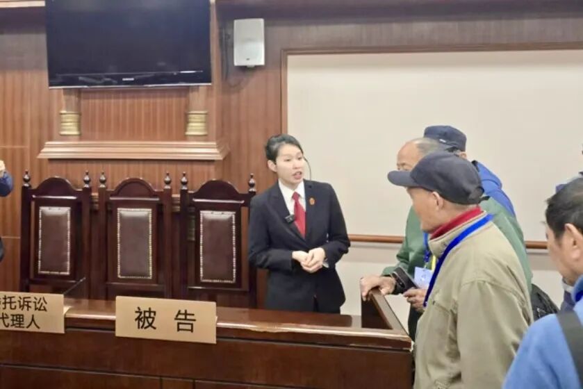 适老化法庭更是“细节拉满”——取消高低门栏、铺设防滑地板、加装安全扶手,庭审现场配备扩音器,当事人席位上整齐摆放着放大镜,处处彰显着司法对老年群体的贴心关怀与周全保障,让老年人感受到司法温度与法治力量。