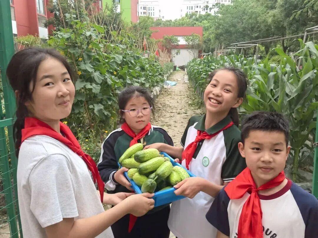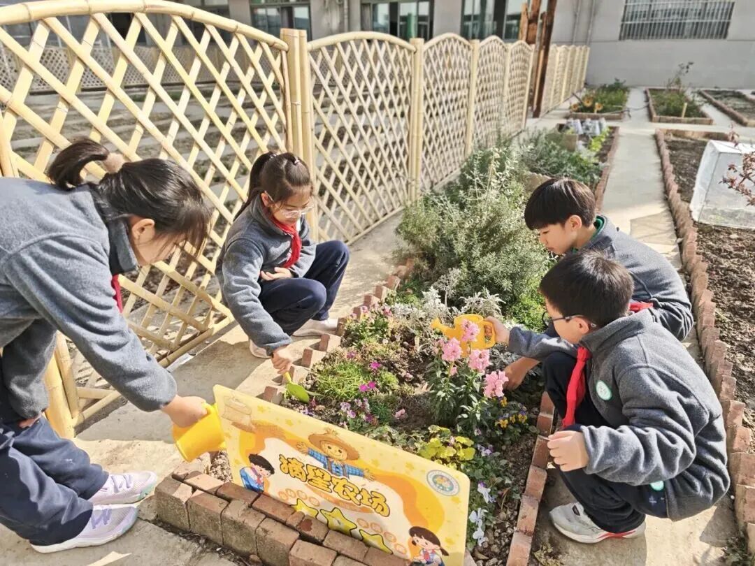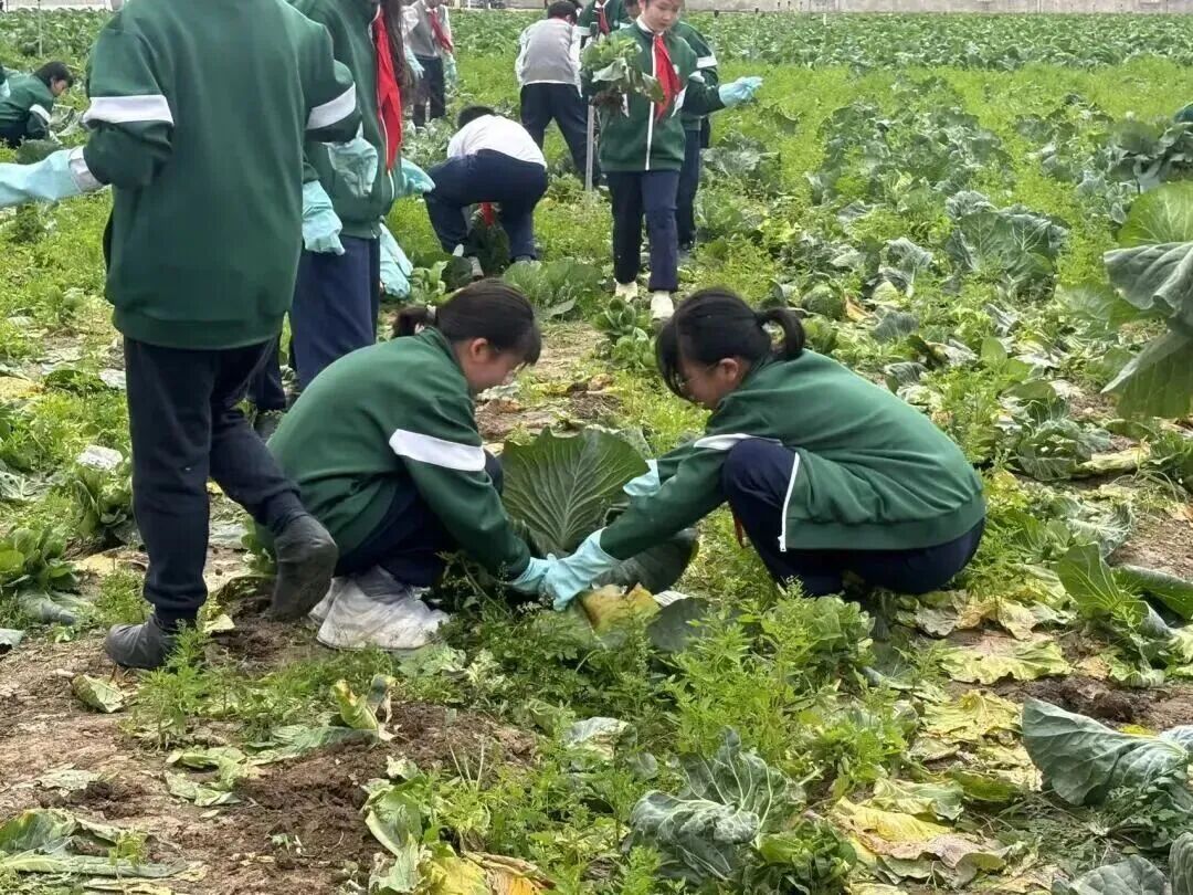 学校按学段分层设计劳动实践方案:低年级学生探秘农作物,AI赋能完成研学;中年级学生走进农园参与水稻收割脱粒,体悟“粒粒皆辛苦”;高年级学生走进博物馆,从文物中读懂“劳动创造文明”。校内打造专属实践区域,确认各班“责任阵地”,学生从播种时的土壤翻整、作物选种,到生长中的浇水、施肥、除草,再到采摘分拣,沉浸式感受农作物生长周期。