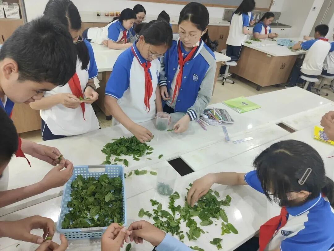 跨越学科融合劳动、生物、化学等多门知识,将农业、烹饪、传统文化与现代技术融入劳动之中。以“芳香植物”为主题,开设丰富有趣的实践课程,学生们动手制作薄荷柠檬水、薄荷膏等作品,从校园种植园采摘原料,经过提取精油、制作护手霜和手工皂,再到自主设计包装,体验从种植到成品的完整过程。这些作品不仅用来装饰校园、赠送亲友,也让学生感受到劳动带来的情感温度与社会意义。