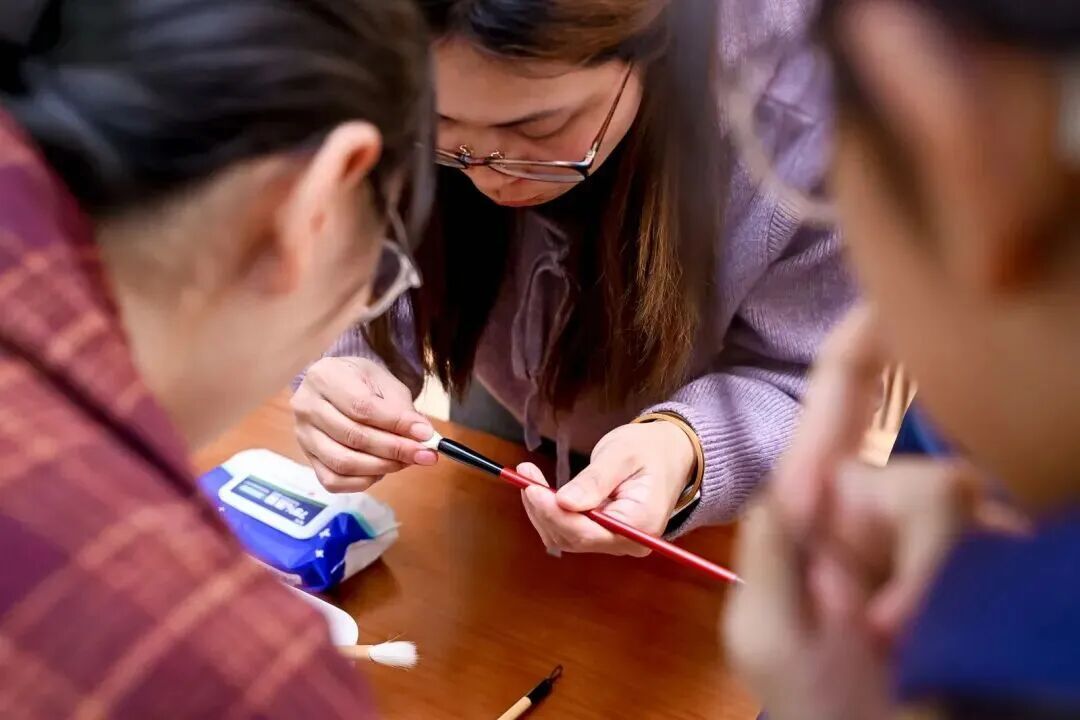 学校精心设计“手工造纸”体验、“毛笔组装”体验、“砚台装饰”创意等系列活动。在老师指导下,学生们沉浸式体验传统书法工具的制作,感受“专属墨宝”的实用价值与艺术美感,成品制作的成就感与对书法工具的敬畏感。学习传统工艺,不仅提升了学生的劳动技能与创新素养,更让“劳艺融合”的理念深入童心。