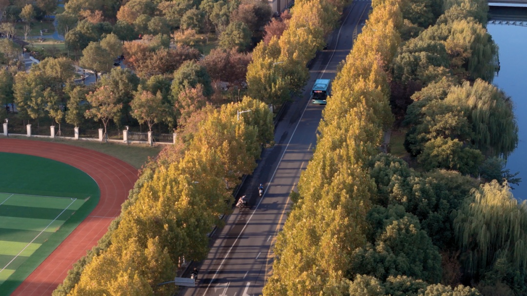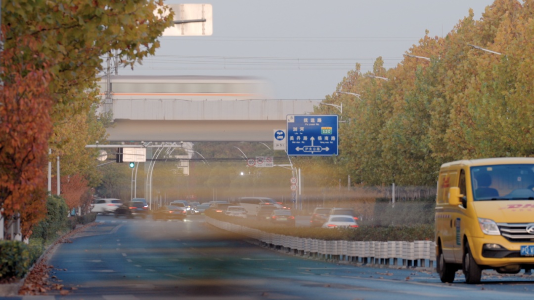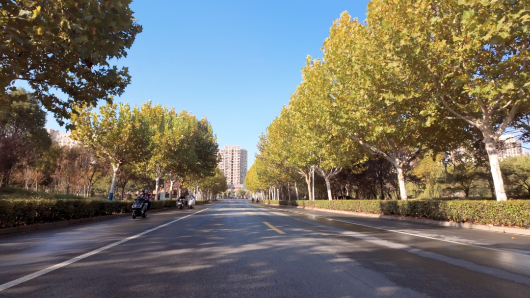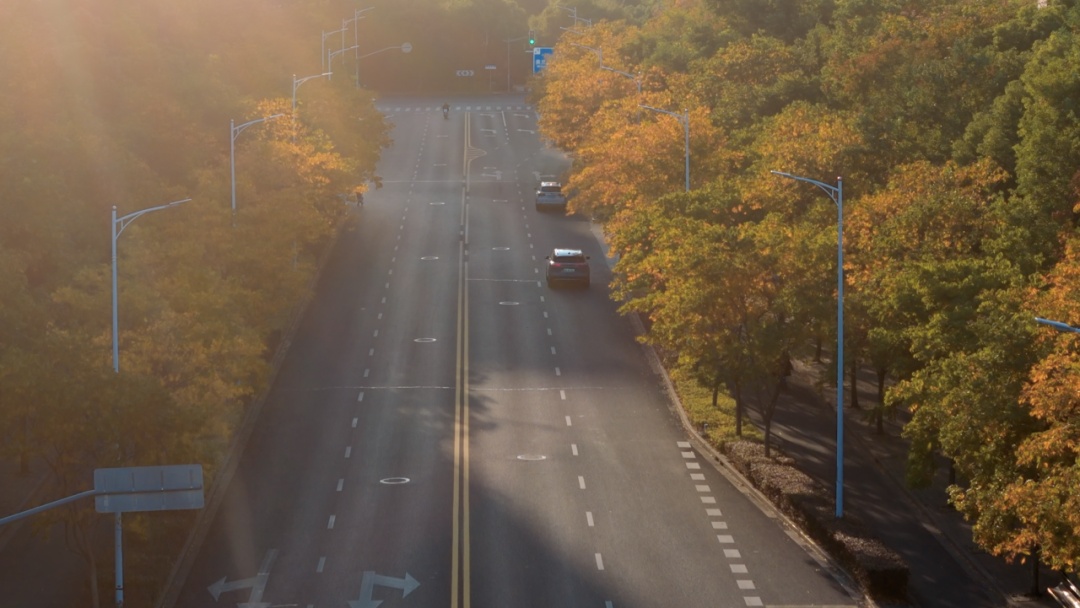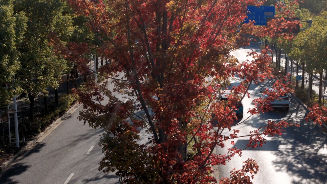 车轮驶过,红叶以旋舞回应,替匆匆行人把未说出口的炽烈心事寄向远方。