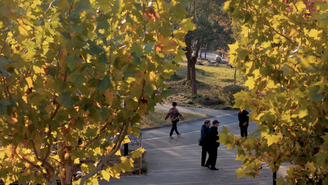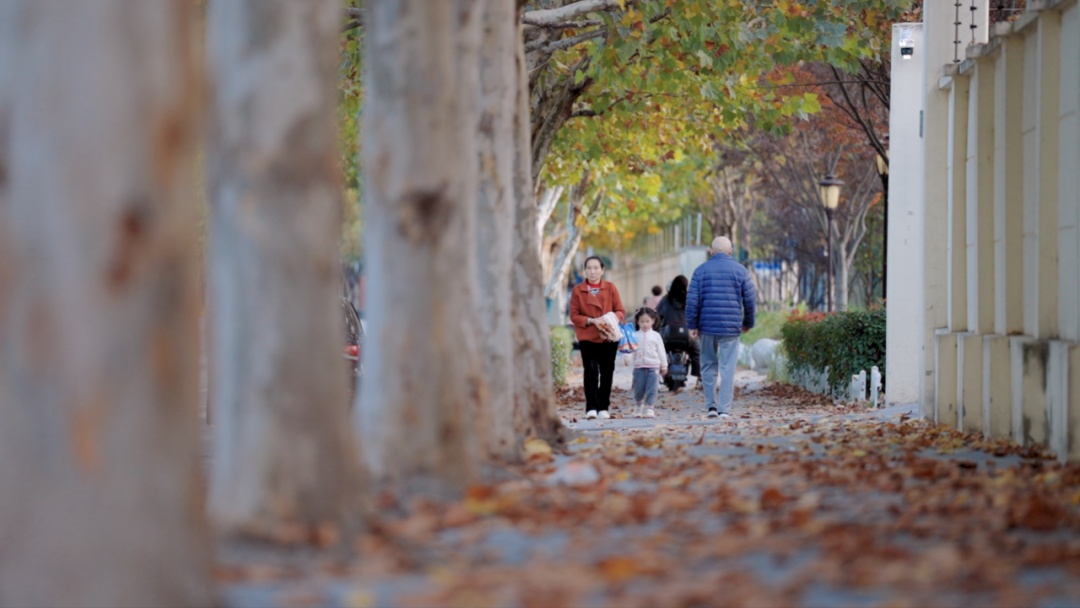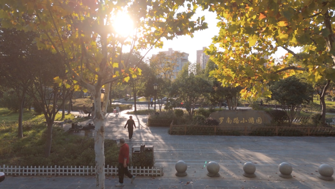 罗南路的法国梧桐撑开巨伞,伞下是银发老者与学步孩童——一端牵着黄昏,一端挽着晨曦。