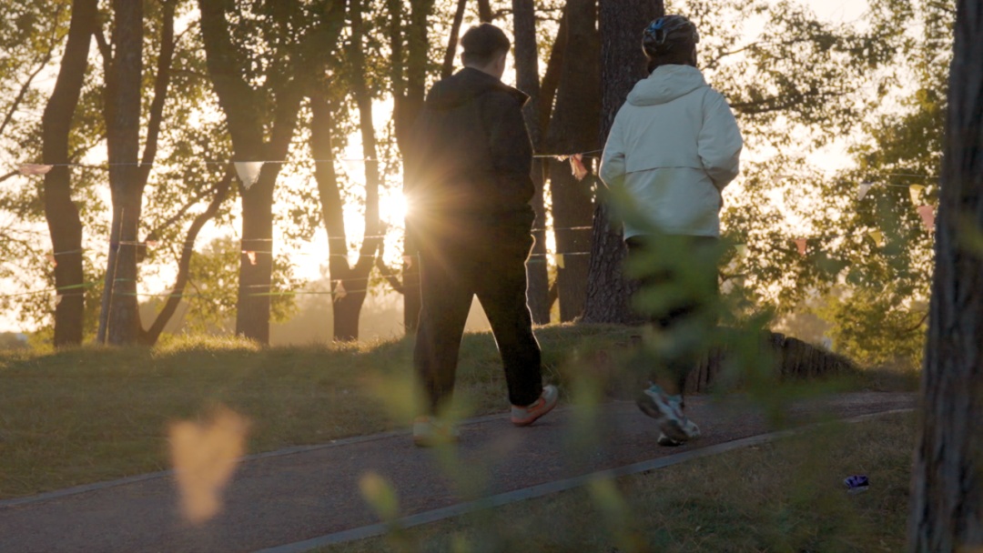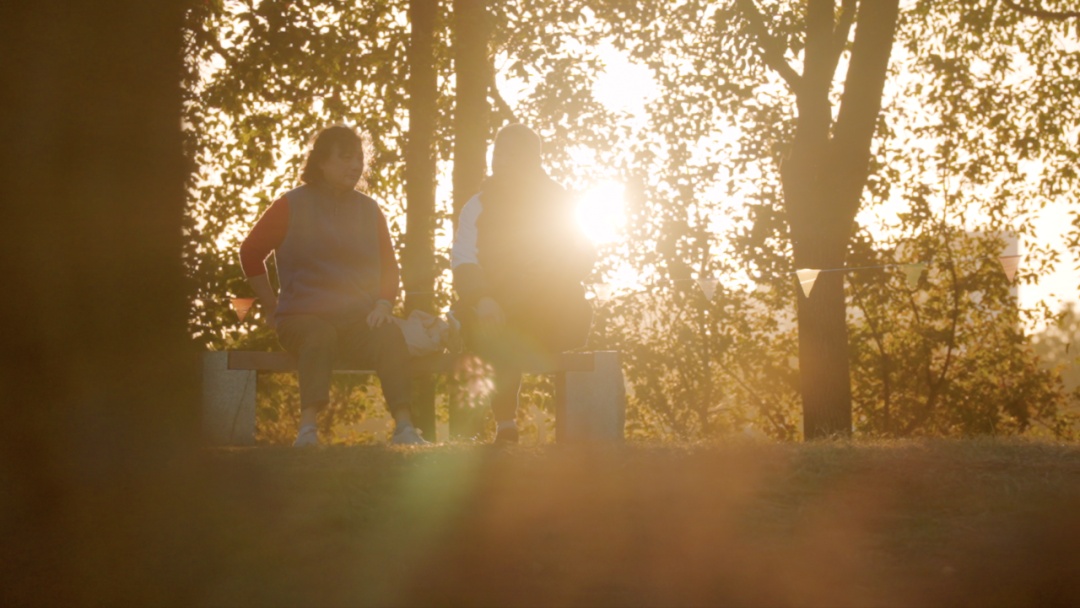落叶铺成软毯,让踉跄的脚步与稳健的木杖同奏沙沙鼓点;树缝漏下的光斑,像时光给两双眼睛共用的放大镜,教人看清:生命轮回,不过一叶新替一叶黄。
