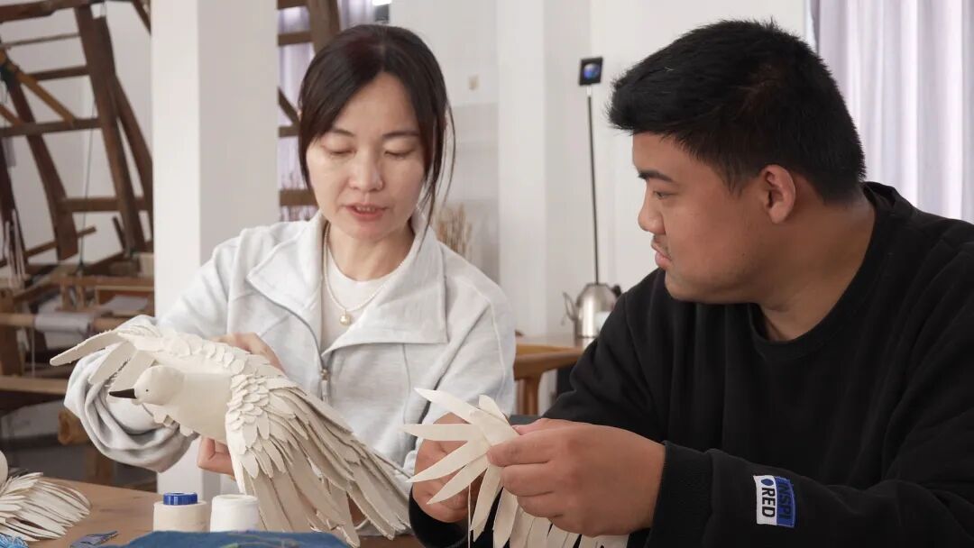 在竖新镇仙桥村的木棉花开“阳光手作”非遗工作室,听障小伙茅施怡正潜心缝制一只纯白土布水鸟玩偶,灵动的造型栩栩如生。作为一名设计专业的应届大学生,来到工作室半年多的他,不仅参与手工缝制,还发挥专业所长为工作室设计新品。当发现旧时崇明织带用的织带板在市场上难寻踪迹时,茅施怡主动设计可爱造型并联系厂家定制,成功解决了这一难题。“我喜欢这份工作,能把自己的创意融入到作品中,做自己喜欢的玩偶特别有意义。”茅施怡的言语中都是对这份工作的热爱。