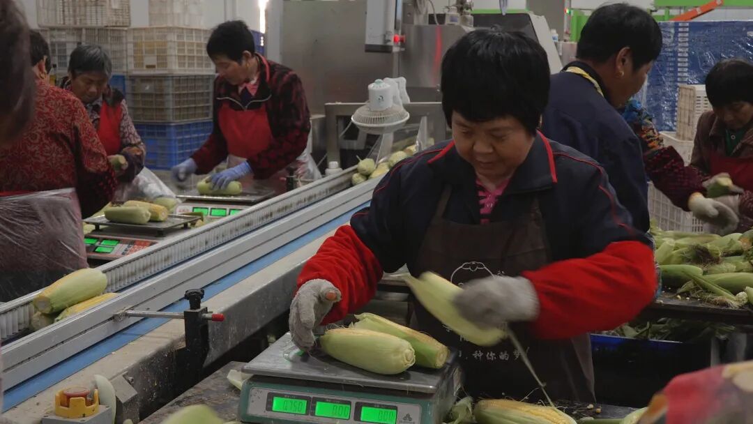 秋末冬初,为保障市场供应,上海享农果蔬专业合作社基地内一片繁忙。在蔬菜包装车间,数十名员工正有条不紊地对玉米等蔬菜进行分拣、称重,残疾人员工朱洪英专注地完成着手中的工序。“我主要负责称分量,重活都不让我干,同事们都很照顾我,能做点活补贴家用特别好。”朱洪英开心地说。