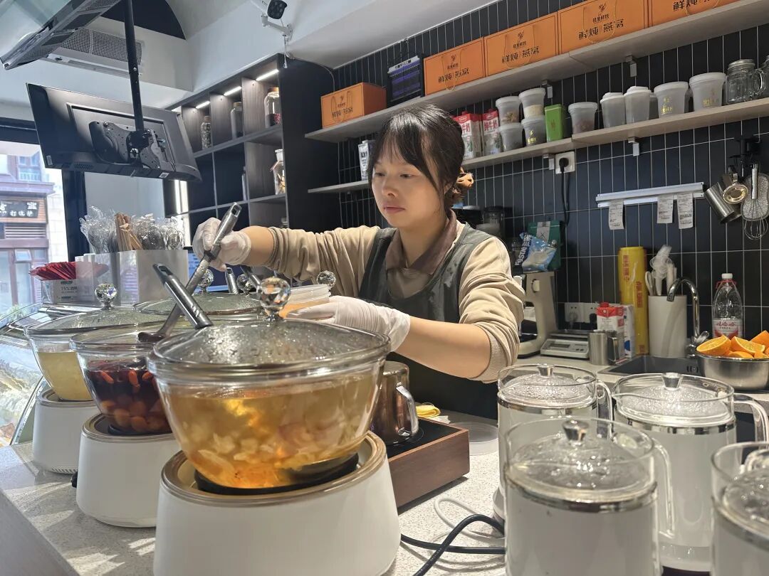 近日,随着气温持续走低,崇明多家饮品店迎来销售高峰,以养生炖品和创意热饮为代表的“暖经济”持续升温。各类产品兼顾健康需求与社交体验,成为市民冬日消费的新选择。