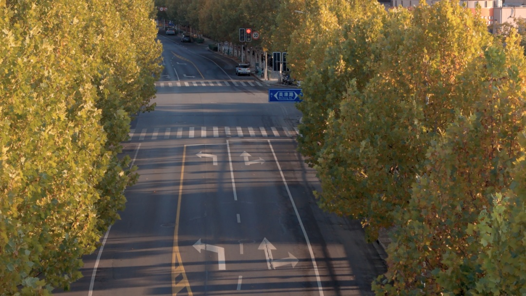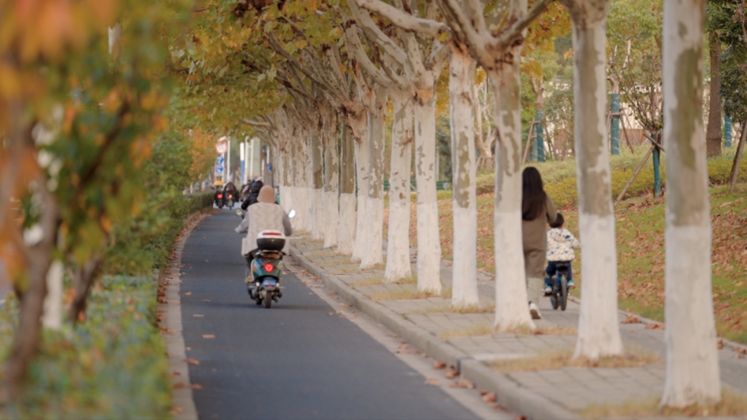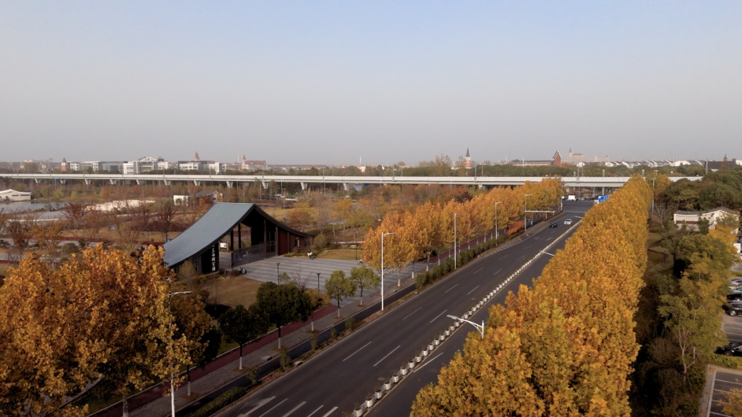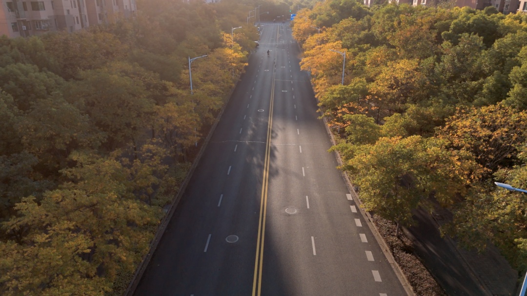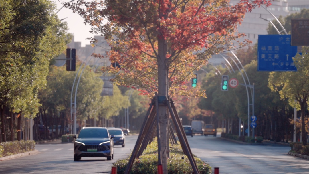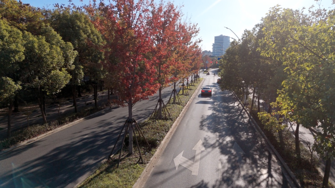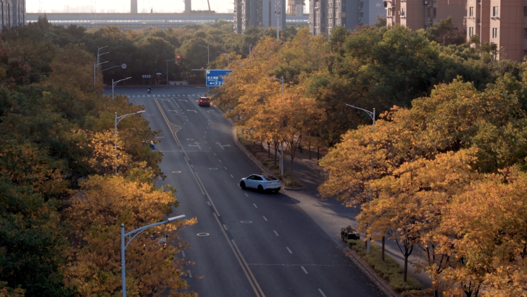 枫叶先红了,银杏再添金 来宝山区罗店镇的马路走一走 处处都是秋的美景与松弛 美兰湖路 霜降一过,美兰湖路的红枫便点燃整条长街,像谁把晚霞裁成千万张信笺,贴在城市胸口。 车轮驶过,红叶以旋舞回应,替匆匆行人把未说出口的炽烈心事寄向远方。 抬眼望,7号线轻轨呼啸掠过,现代速度与古镇温度在此交汇。岁月纵有消磨,只要心怀灼热。 罗芬路 罗芬路的银杏列队成拱,枝桠交错成老友交扣的臂弯。 隔着风情街的欧式橱窗,咖啡香与银杏香交织漫出,像古镇百年商埠的烟火气,在落叶不扫的“黄金隧道”里提醒行人:所有离散,终将在土地里重逢。 罗南路 罗南路的法国梧桐撑开巨伞,伞下是银发老者与学步孩童——一端牵着黄昏,一端挽着晨曦。 落叶铺成软毯,让踉跄的脚步与稳健的木杖同奏沙沙鼓点;树缝漏下的光斑,像时光给两双眼睛共用的放大镜,教人看清:生命轮回,不过一叶新替一叶黄。 美丹路 美丹路把调色盘打翻:冷绿、锈红、紫赭被晨雾揉成一条渐变丝带,在车窗外一路铺展。 色块彼此渗透,像四条街的情感在此击掌——无论枫的火、杏的金、桐的褐,终究汇成一句低语:色彩会褪,而“相伴”是城市最恒常的底色。 把落叶夹进口袋 把色彩留给晚风 四条马路走完 满身心浸染了秋的斑斓