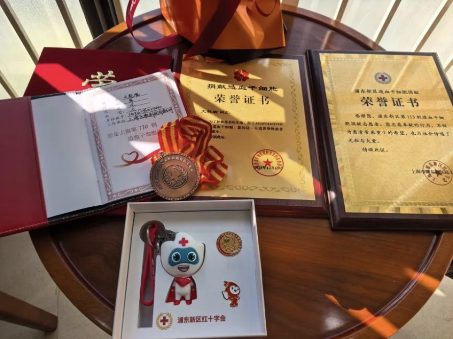 这份珍贵的生命馈赠,源于九年前一个充满善意的决定。2016年,在二工大就读大学一年级的火乾聪参加了“大爱相‘髓’——上海第二工业大学造血干细胞捐献志愿活动”,并加入了中华骨髓库。今年他收到匹配成功的通知后,没有丝毫犹豫,一口答应。“能配上是一种缘分,更是一种责任。”他的坚定感染了家人,新婚妻子第一时间表示支持,父母最初的担忧也逐渐化为理解。捐献前4天开始,他遵医嘱注射动员剂,促进造血干细胞增殖,并最终如愿成功捐献。