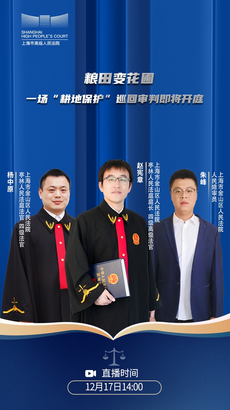 12月17日14:00,上海市金山区人民法院(以下简称金山区人民法院)在案涉土地所在村委会巡回审理的土地承包经营权合同纠纷案将进行公开网络直播。