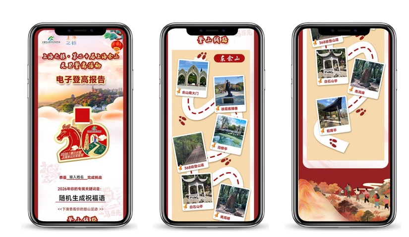 本届佘山登高亮点纷呈。活动现场将设立“马上有喜市”主题市集,并联动区内餐饮、住宿、景区等57家商户,通过支付宝“碰一碰”享优惠等方式激发消费活力。为纪念二十周年,主办方特别设计了可拆卸变形为冰箱贴的磁吸式奖牌,并联合中国邮政推出限量纪念邮品。体育冠军的引领参与、专业教练的趣味热身,都将为活动注入专业体育魅力。尤为值得一提的是,科技赋能开启了智慧登高新时代,此次活动不仅实现了全流程数字化管理,还创新打造了“寻亭记”云登高线上互动,通过AR虚拟人物讲述历史、线上打卡收集徽章,实现线上线下沉浸式联动体验。活动路线规划专业,提供安全保障,并设有地铁短驳车,赛事包也可灵活领取,力求为市民提供便捷、安全、丰富的迎新之旅。