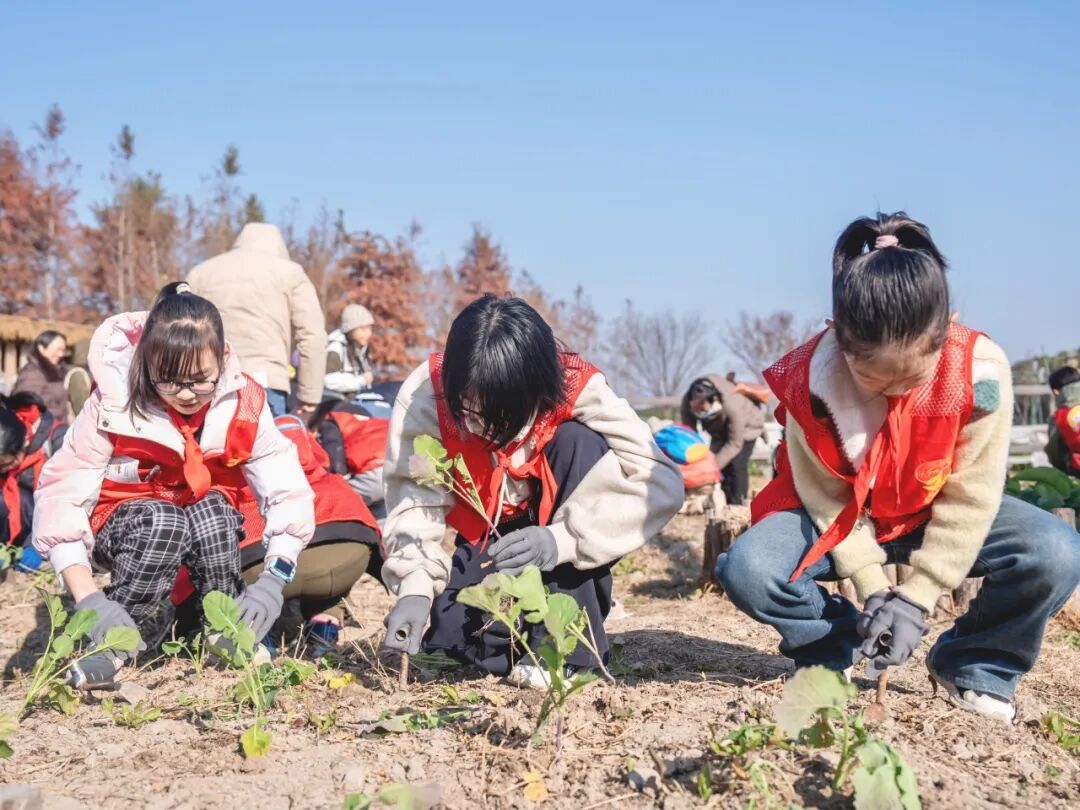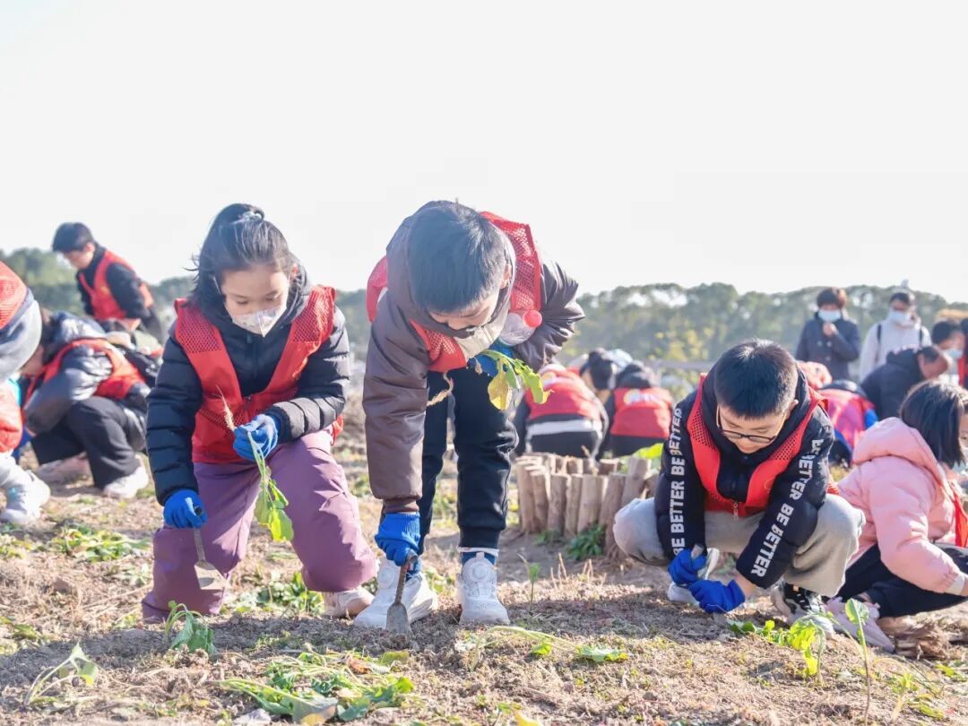 在听完阿姨对油菜种植步骤的讲解后,少年们三人一组,依次进行开沟、放苗、覆土与压实,完成油菜的实地定植。