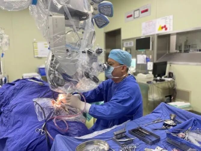 2025 年 9 月,在麻醉科医生的配合下,袁雅生主任带领团队为王先生实施了“左侧颞下窝入路脑脊液漏修补术 + 复合组织瓣修复术腔 + 面神经移植术”。