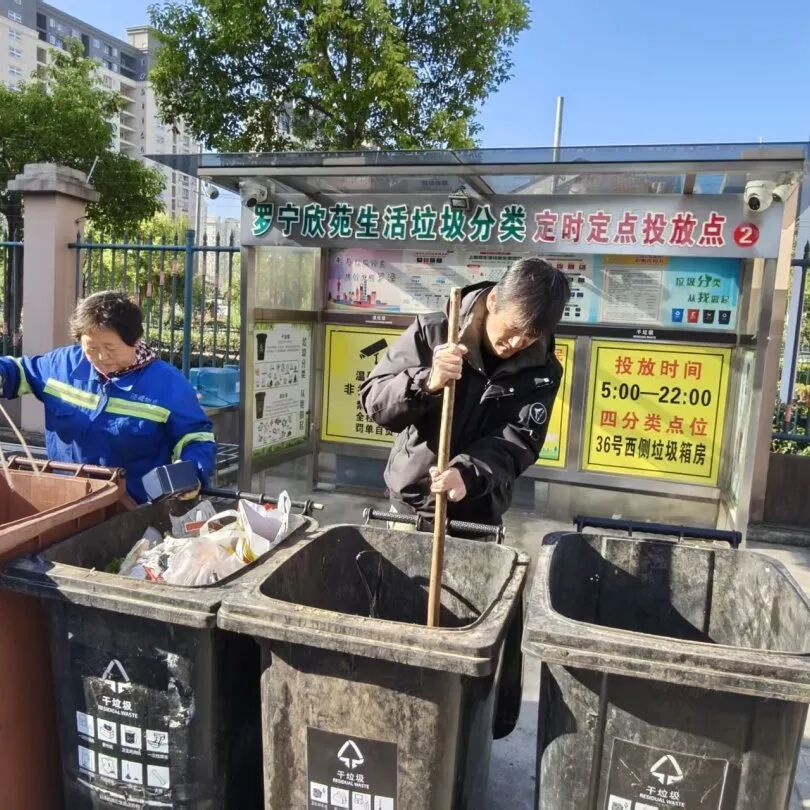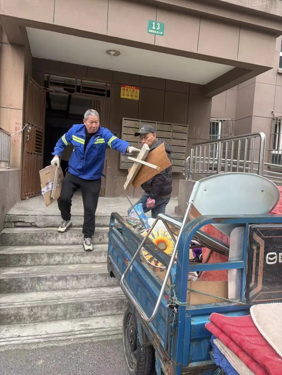 各村居工作人员与志愿者组成“清洁小分队”,拿着小铲子、喷壶清除楼道里的“小黑广告”,清运堆积的废旧家具,同时向居民发放垃圾分类宣传手册,对混投行为现场指导纠正。