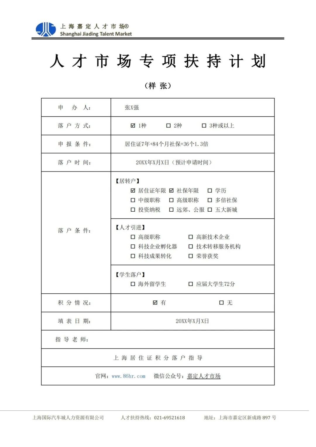 上海嘉定人才市场是拥有20年实操业务经验的人才政策服务机构,致力于提供优质的政策咨询服务,为人才落户提供专业规划以及长期指导。