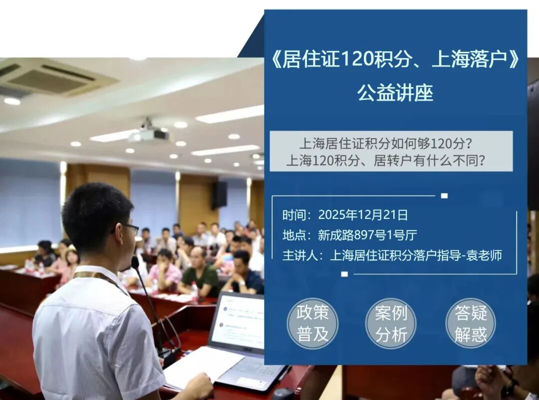 · 主题:《居住证120积分、上海落户》公益讲座