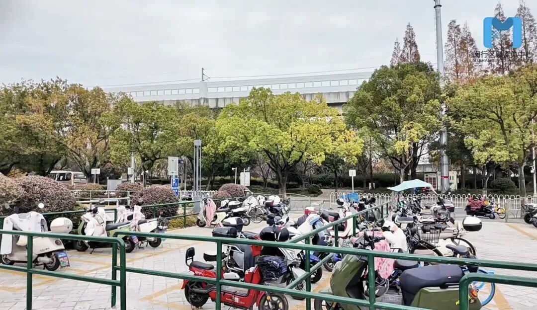 该商场紧邻轨道交通五号线东川路站,周边居民小区与商业设施集中,非机动车停车位一直较为紧张。此前,不少前来取餐的外卖骑手因无处停放车辆,不得不将非机动车停放在道路上,影响通行。