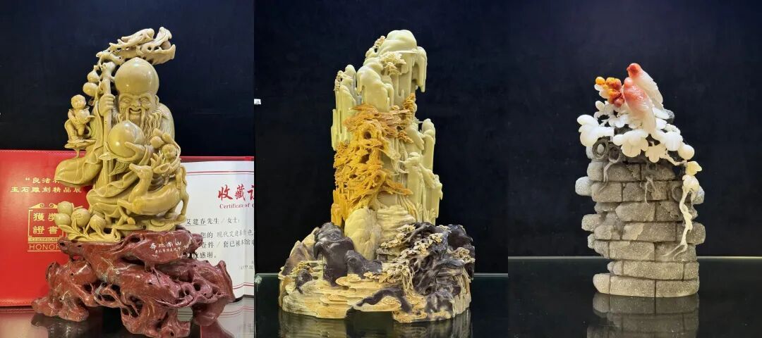 据悉,本次展览的焦点展品为浙江省玉石雕刻大师艾建春的作品。他深耕青田石雕艺术多年,凭借敏锐的艺术洞察力与沉稳精湛的刀法,创作出了大量精品力作。作品在中国工艺美术博览会、北京玉石天工奖、浙江工艺美术精品展等重要赛事中屡获大奖,代表作品被多家专业机构收藏。此外,本次展览还汇聚了多位青田石雕名家及国家工艺美术大师的经典作品,为市民带来了一场兼具观赏性与收藏价值的艺术体验。